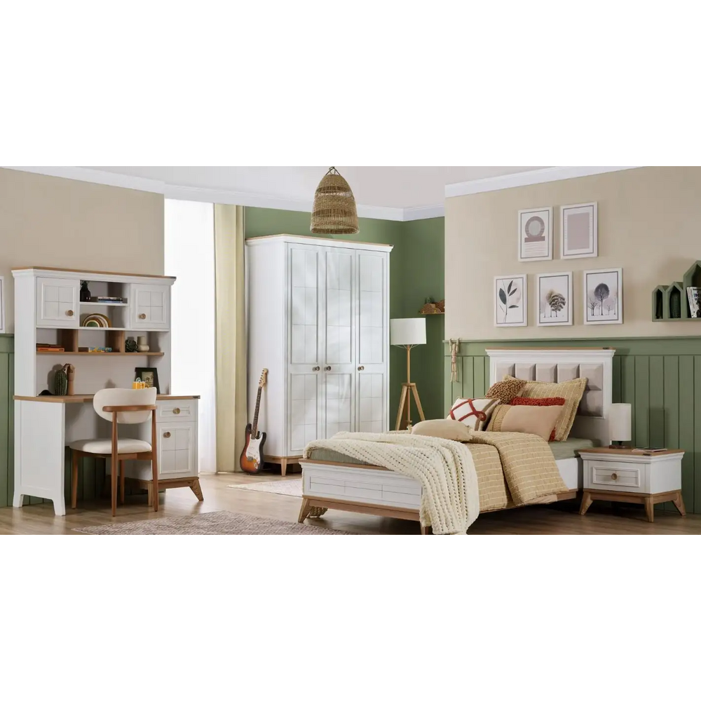 Acesta este realizat din PAL melaminat și MDF vopsit, materiale lemnoase de