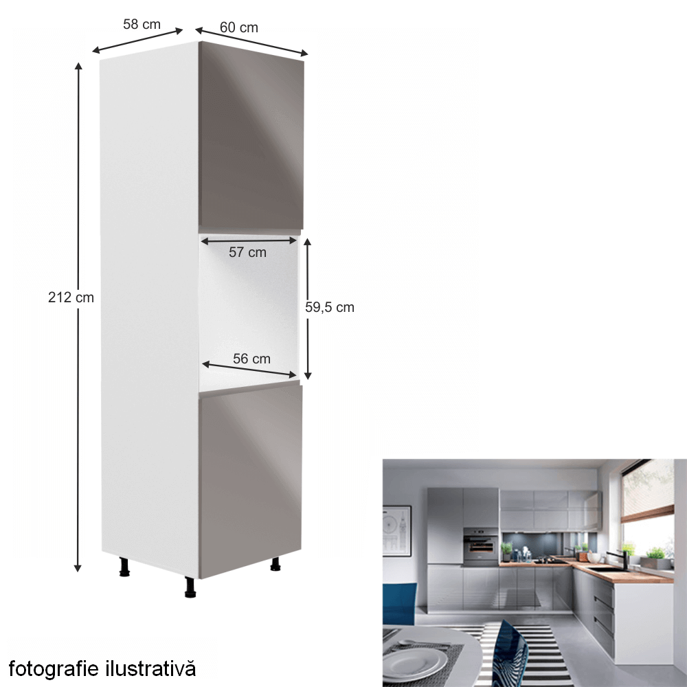 Dulap pentru alimente, alb/gri extra lucios, AURORA D60P