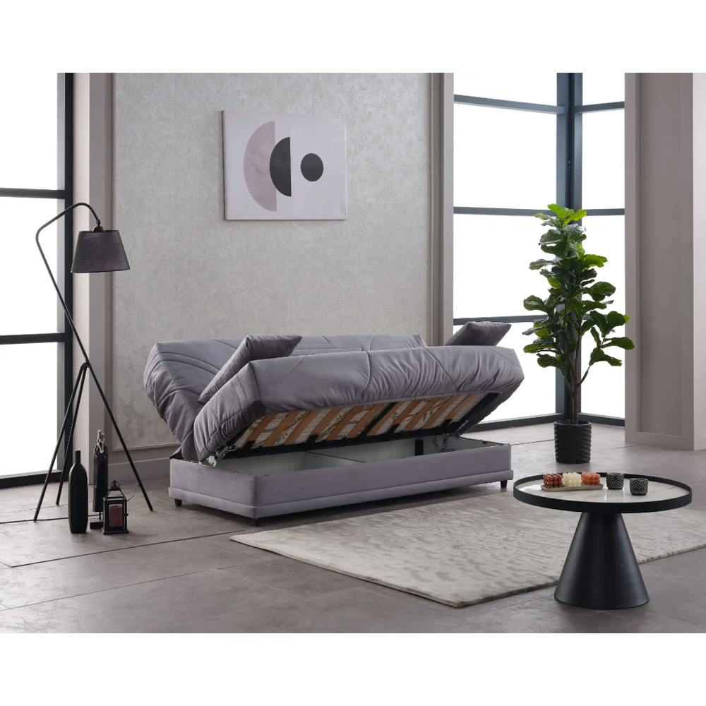 - Funcționalitatea canapelei este completată de lada de depozitare pentru