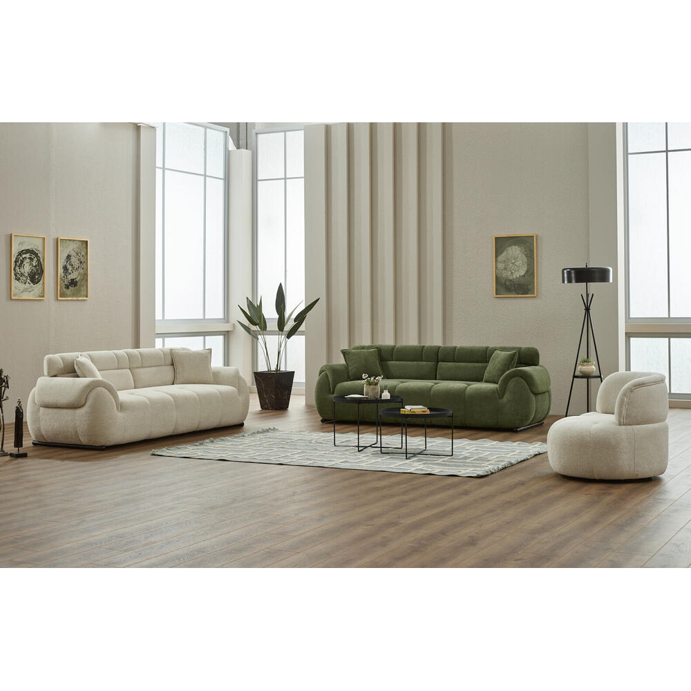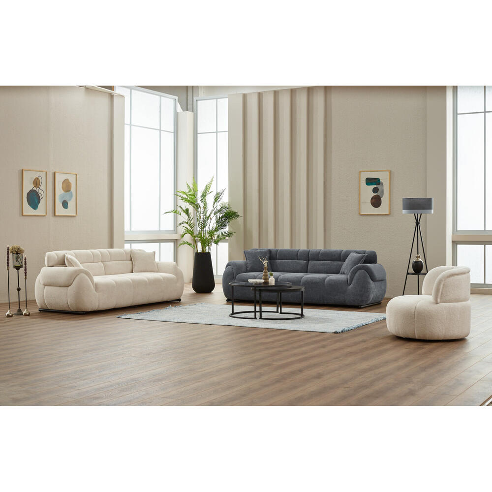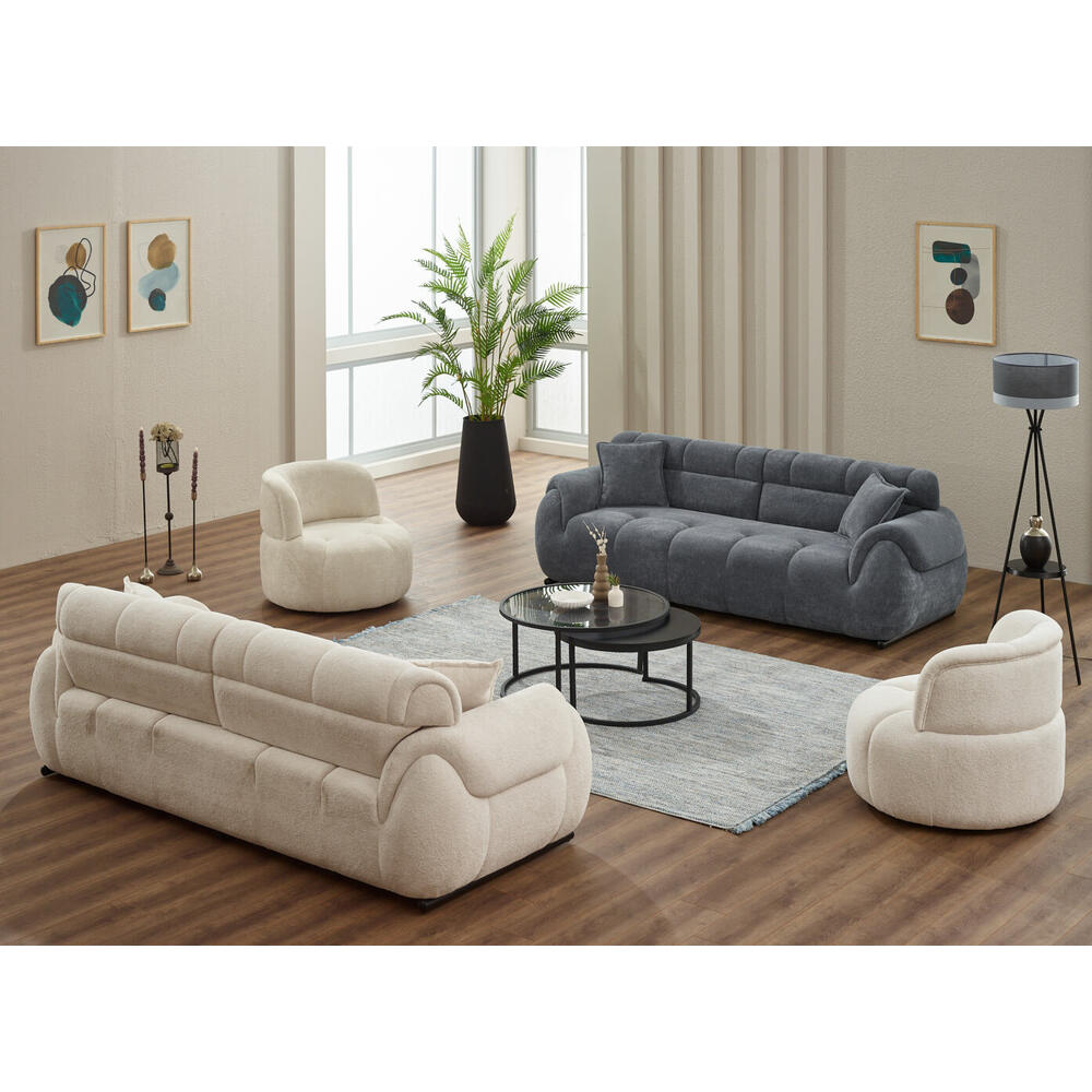 Set canapele din material bouclé cu fotolii rotative – design modern și confort premium