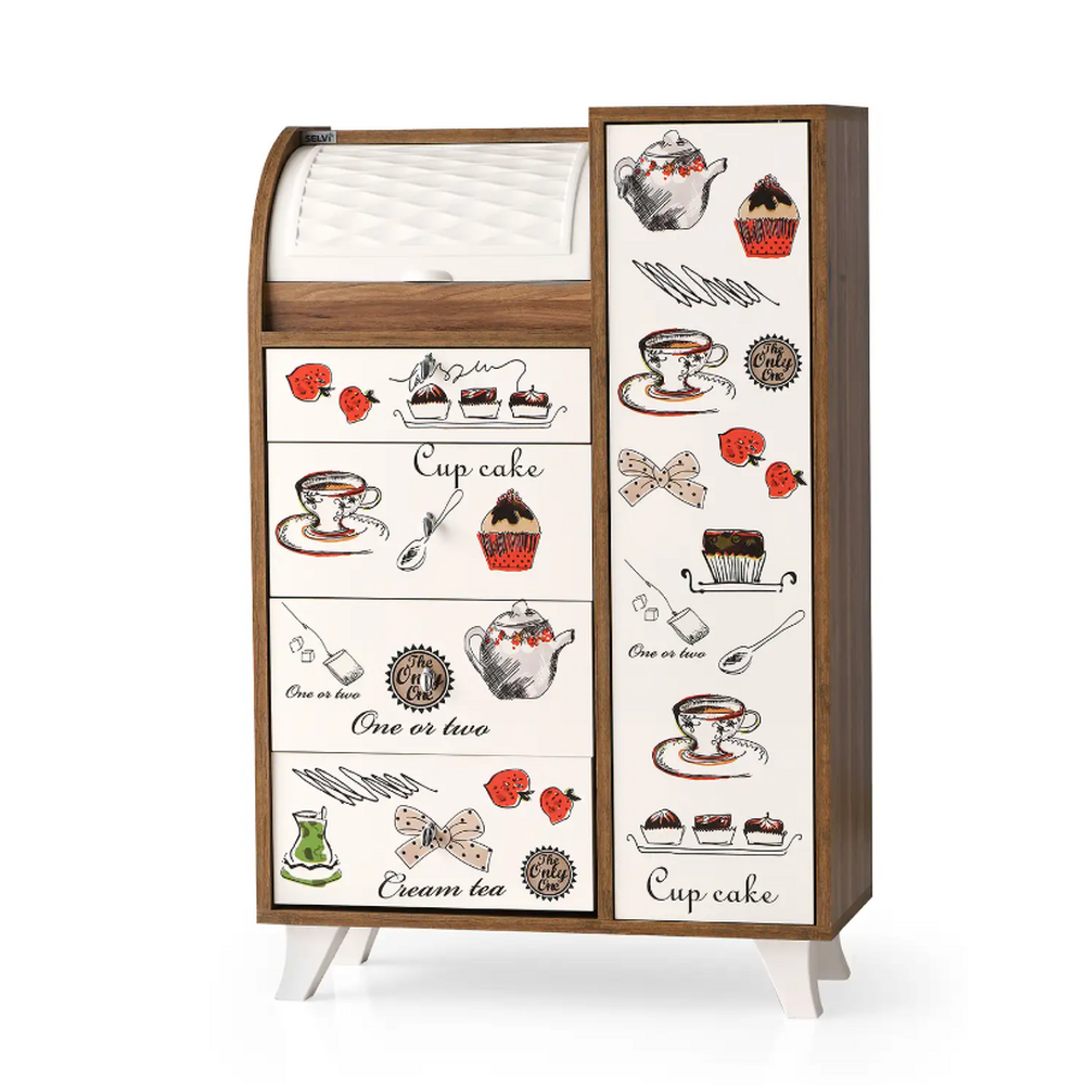Dulap de bucatarie multifunctional Lucas dublu, nuc-latte, retro, 051