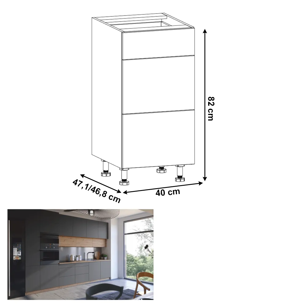 Dulap de jos, stejar artizanal / gri mat, PUSH UP, LANGEN D40S3