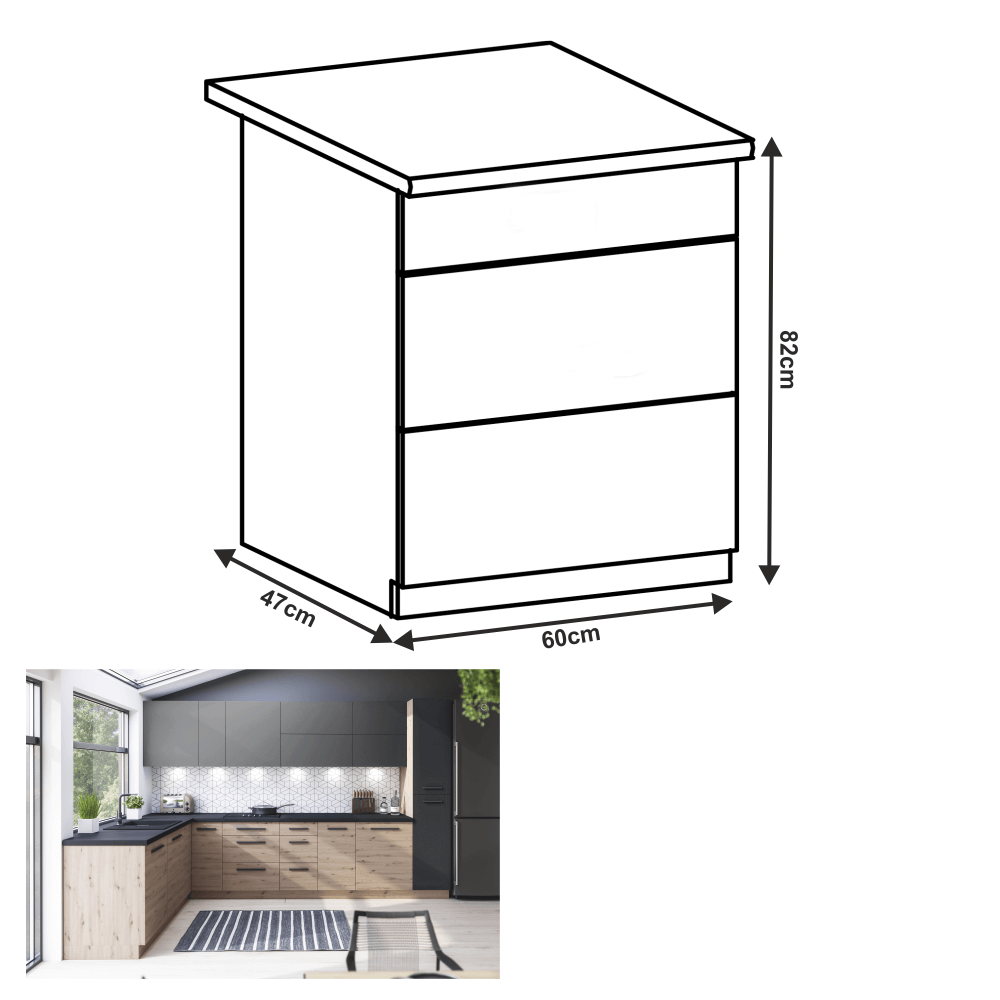 Dulap de jos, stejar artizanal, PUSH UP, LANGEN D60S3