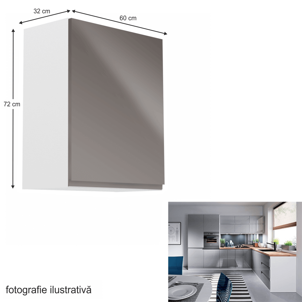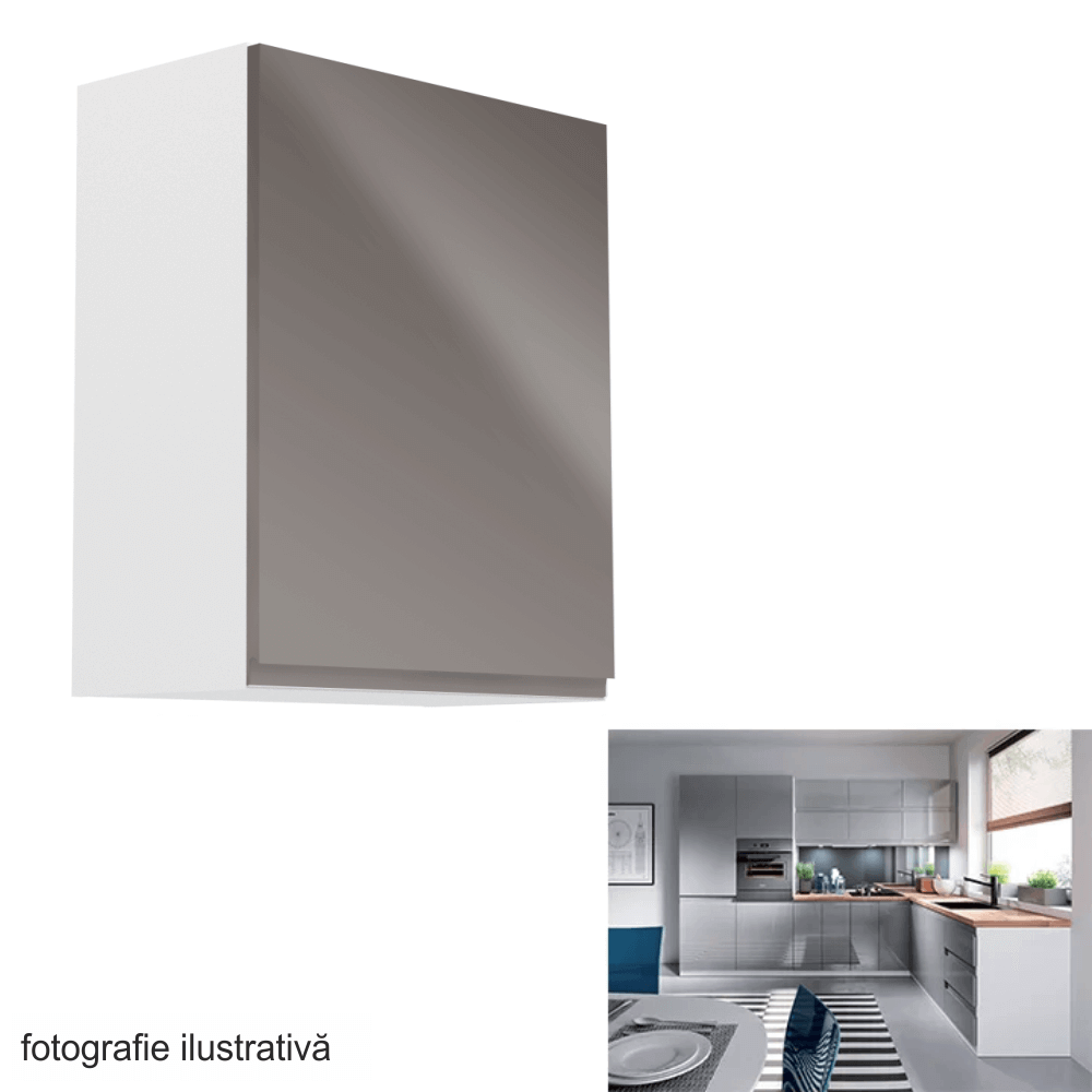 Dulap superior, alb/gri extra lucios, dreapta, AURORA G601F