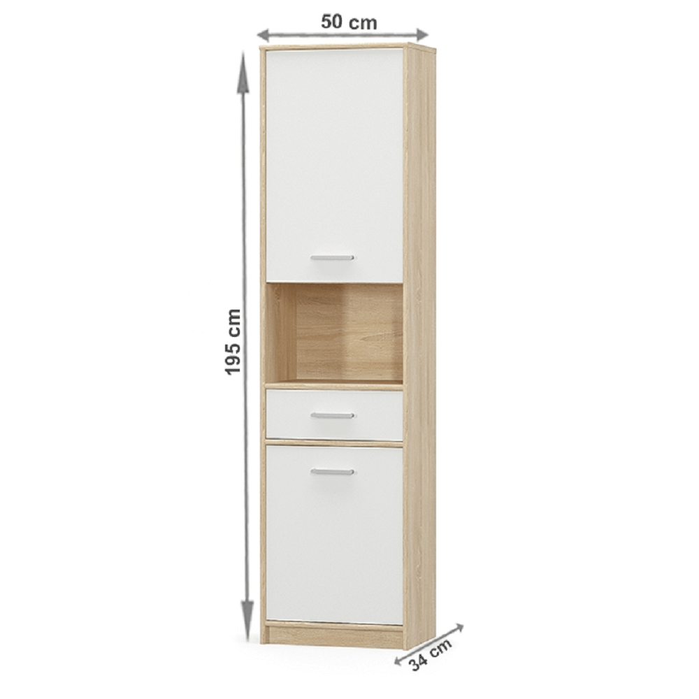 Etajeră 2D1S, alb/stejar sonoma, TEYO