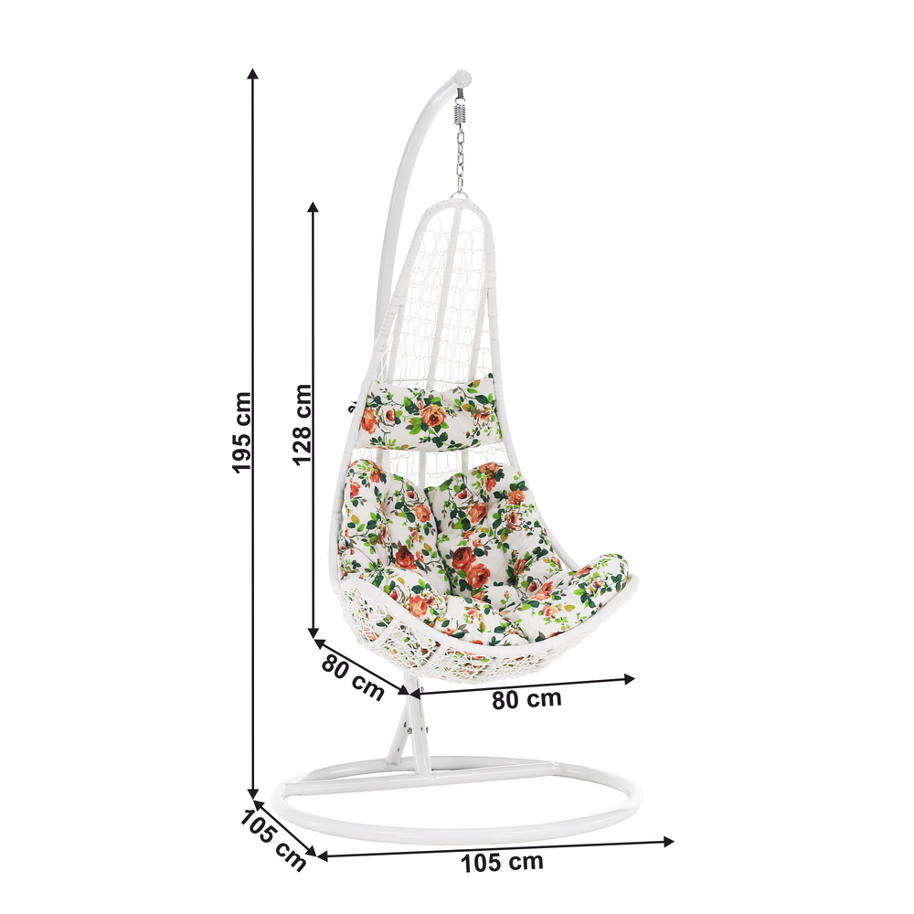 Fotoliu suspendat, alb / flori cu model, KALEA 2 NEW