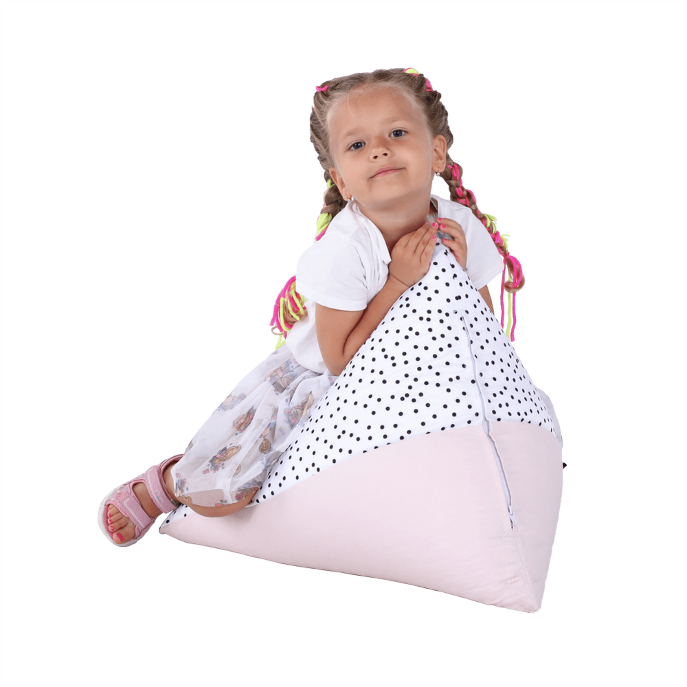 Fotoliu tip sac, alb/roz/gri, POMPOM