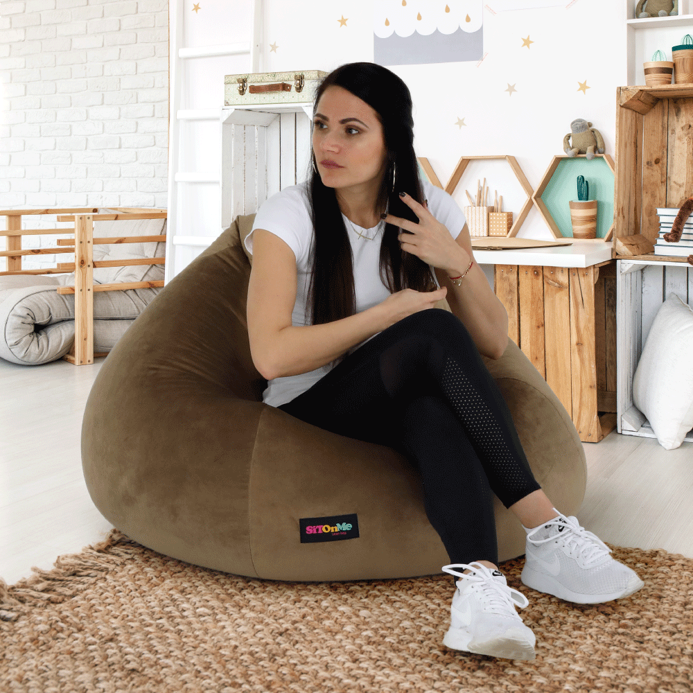 Fotoliu tip sac, material textil gri-maro TAUPE, TRIKALO