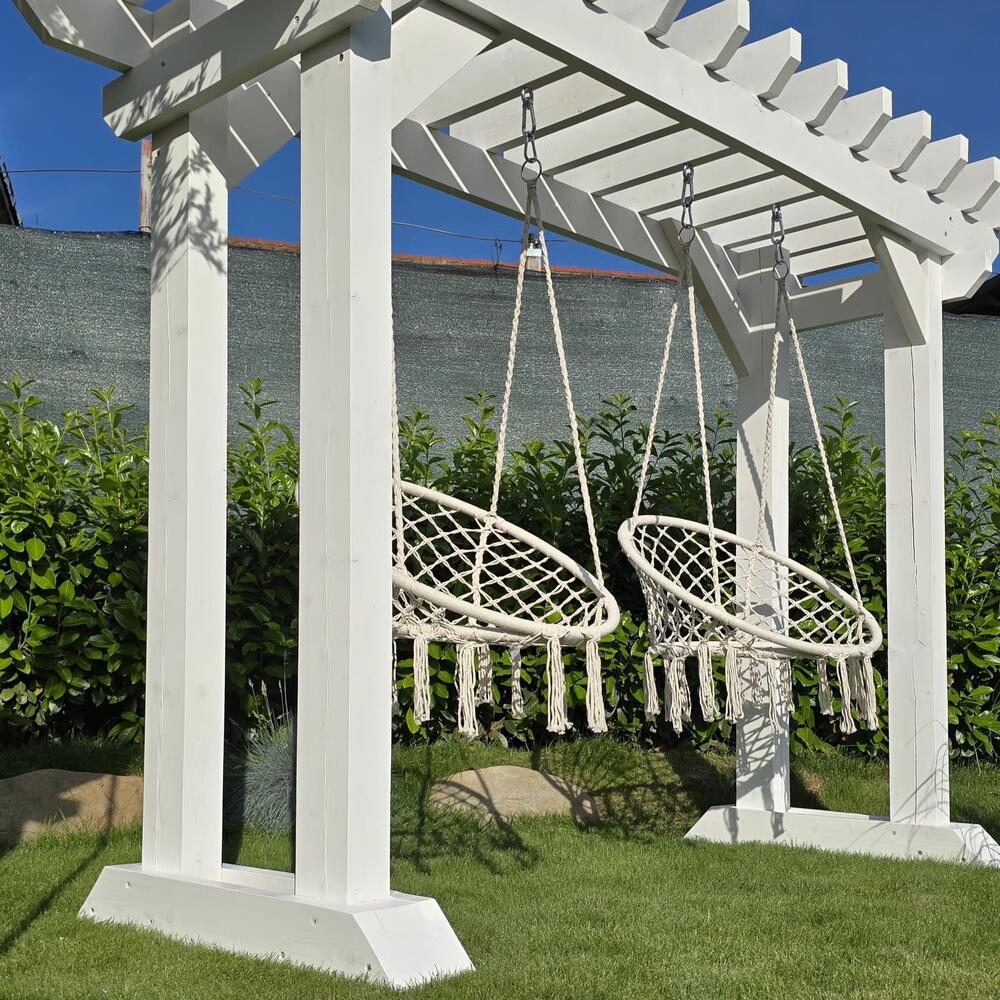 Transformă-ți grădina într-un colț de relaxare cu Bavy Relax, un leagăn suspendat din lemn masiv, gândit și realizat integral în atelierul nostru. Designul său elegant și robust aduce un plus de stil și funcționalitate oricărui spațiu exterior.