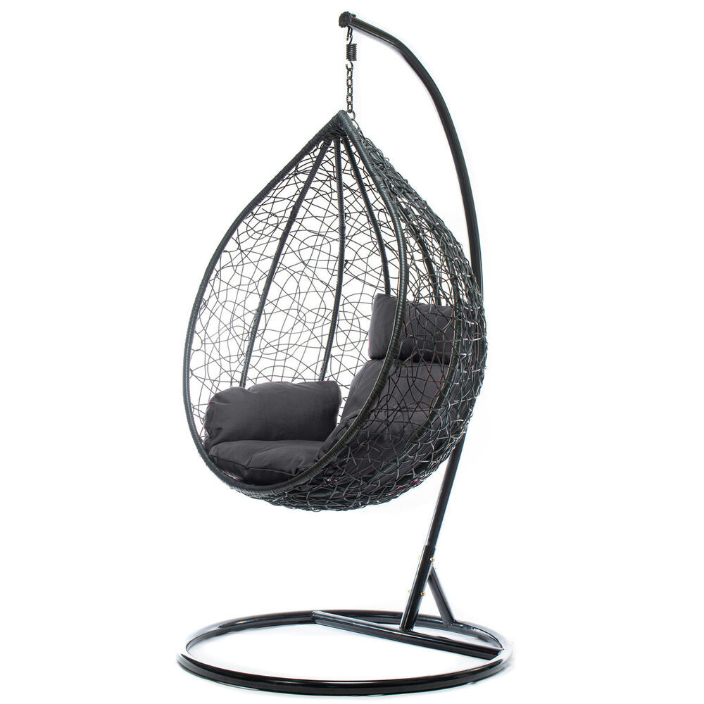 Scaun suspendat tip scoica din ratan, terasa/ balcon, negru Bavy