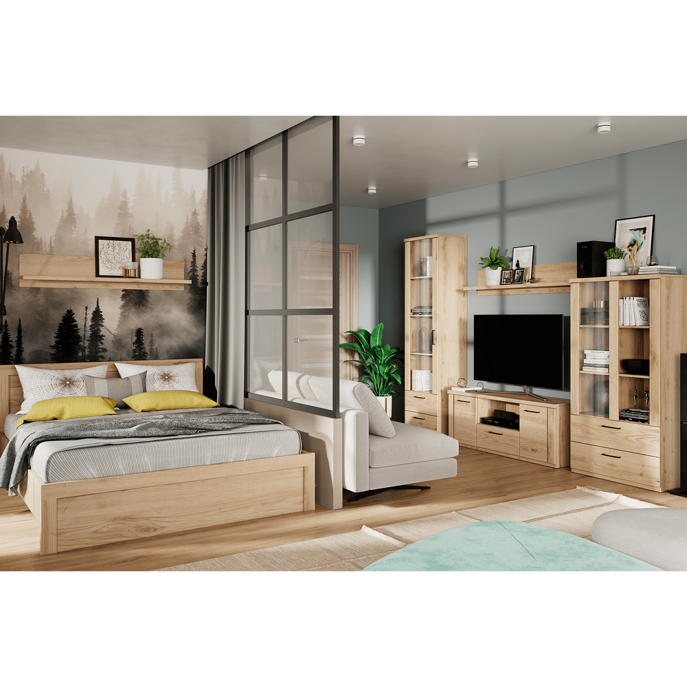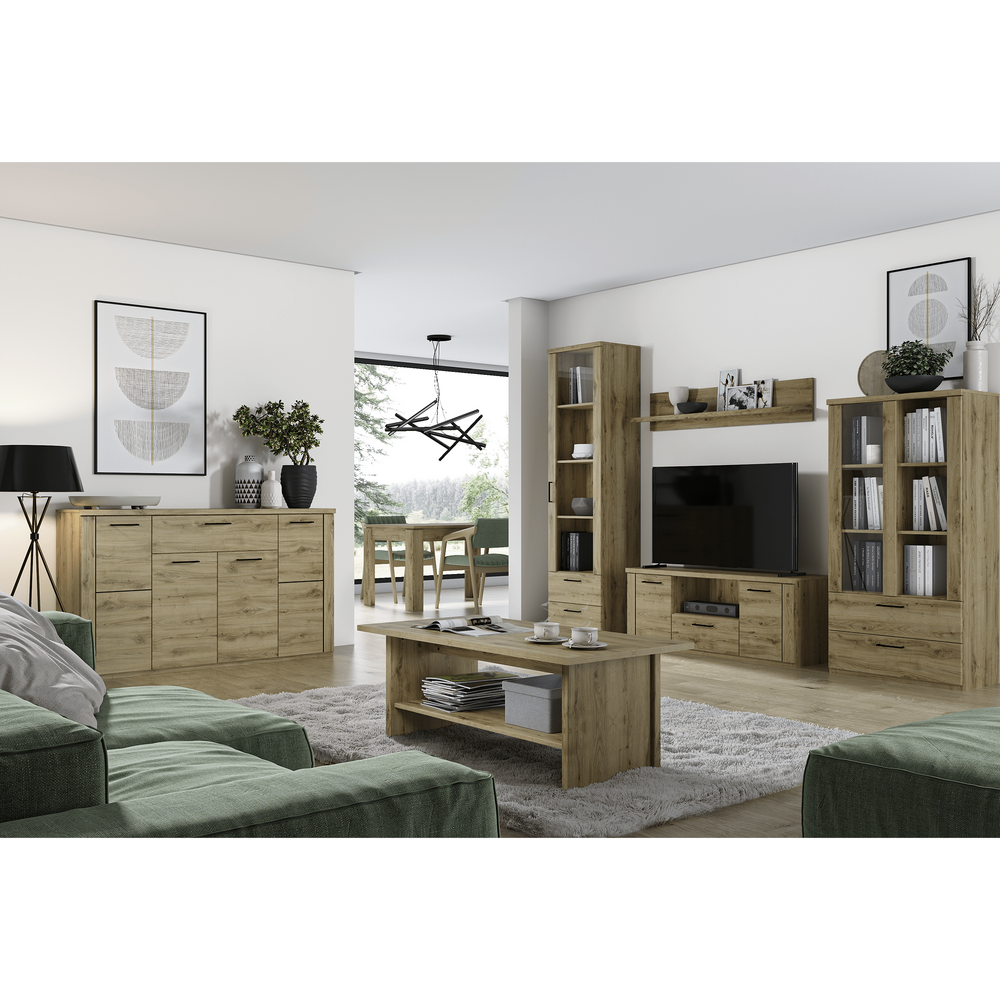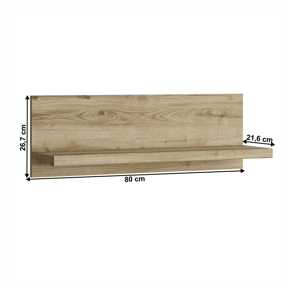 "Raft DORSI 80 Material: DTD laminat Culoarea: stejar navarra Dimensiuni (LxAxÎ): 80x21,6x26,7 cm Grosimea materialului: 1,6 cm Capacitate de încărcare: 3 kg Spaţiu de depozitare deschis Design modern Livrat în formă dezasamblată"