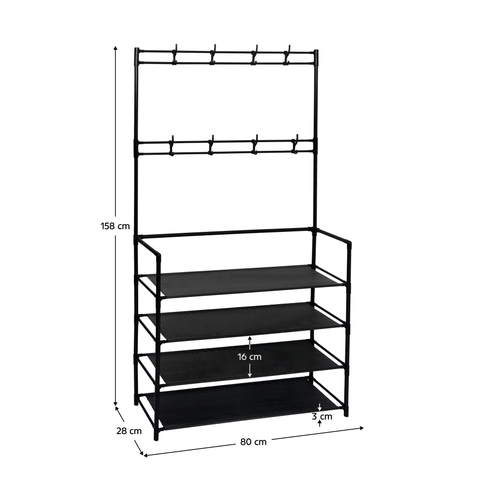 Cuier cu suport pentru pantofi, negru, TARAS
