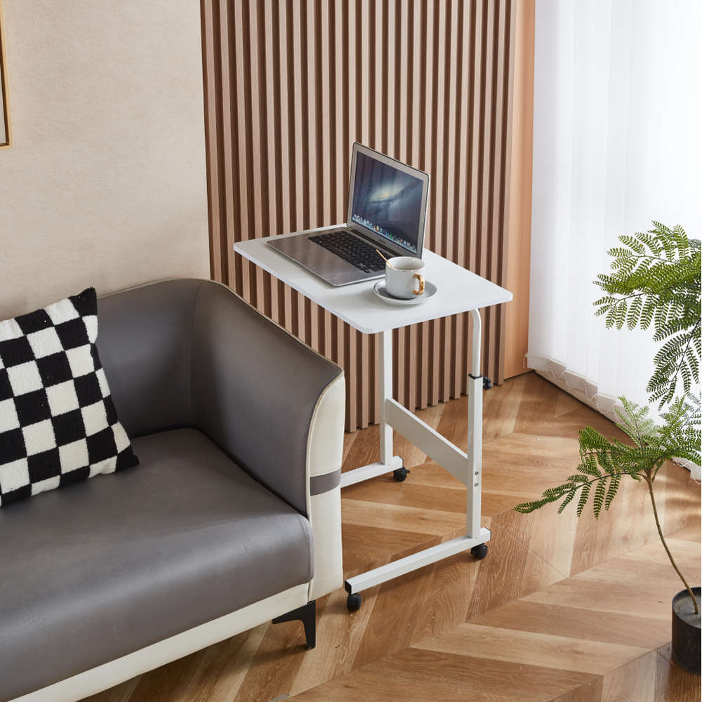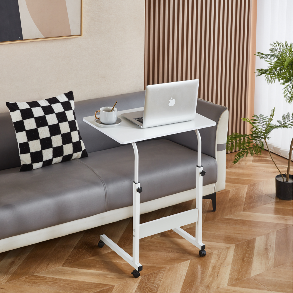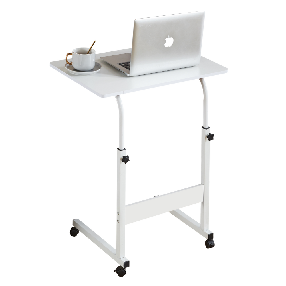 Reglabil masă PC cu roţi, albă, JUSTUS