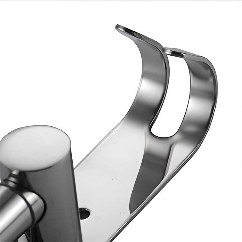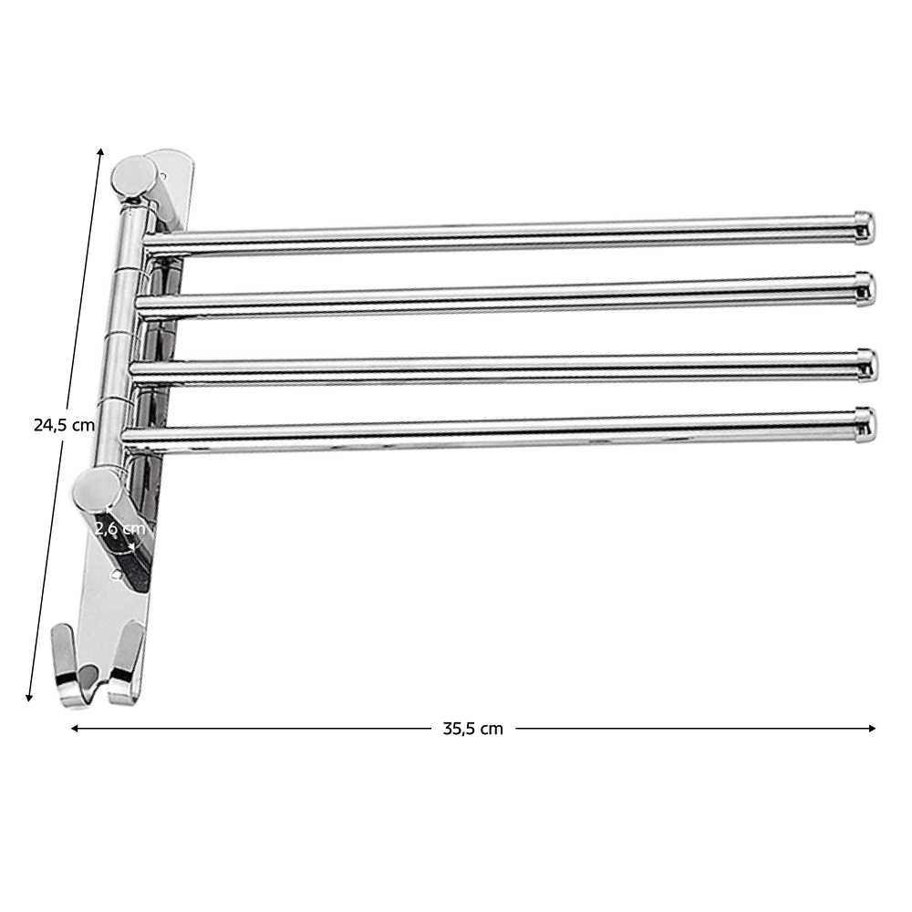Material: otel inoxidabil Culoare: argintie Dimensiuni (lxAxh): 35,5x2,6x24,5 cm Cârlig practic 4-braţe Lungime braţe: 32 cm Distanţa dintre braţe: 2 cm Braţe pivotante De perete Portanţă: 5 kg Livrat asamblat