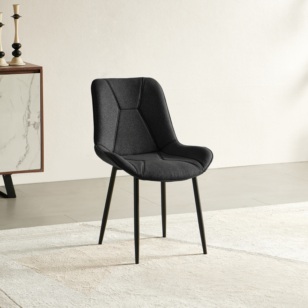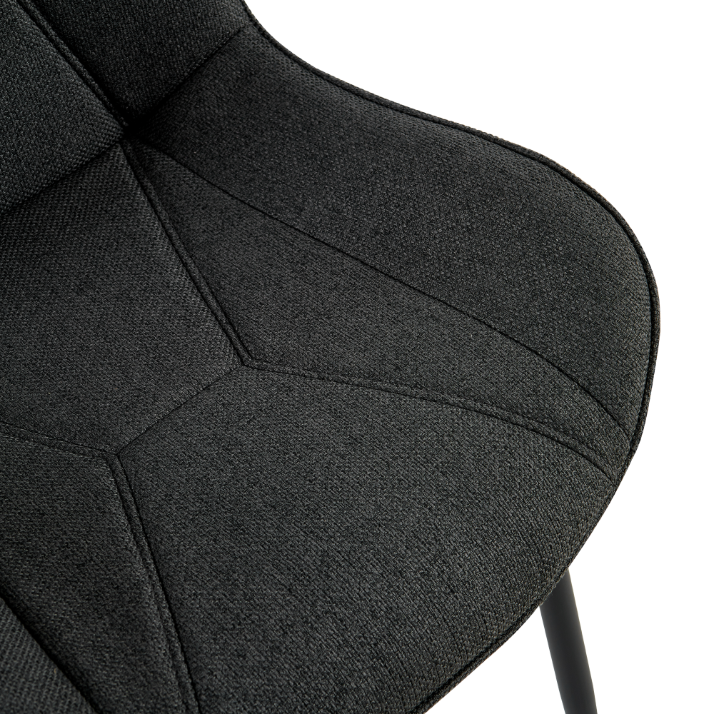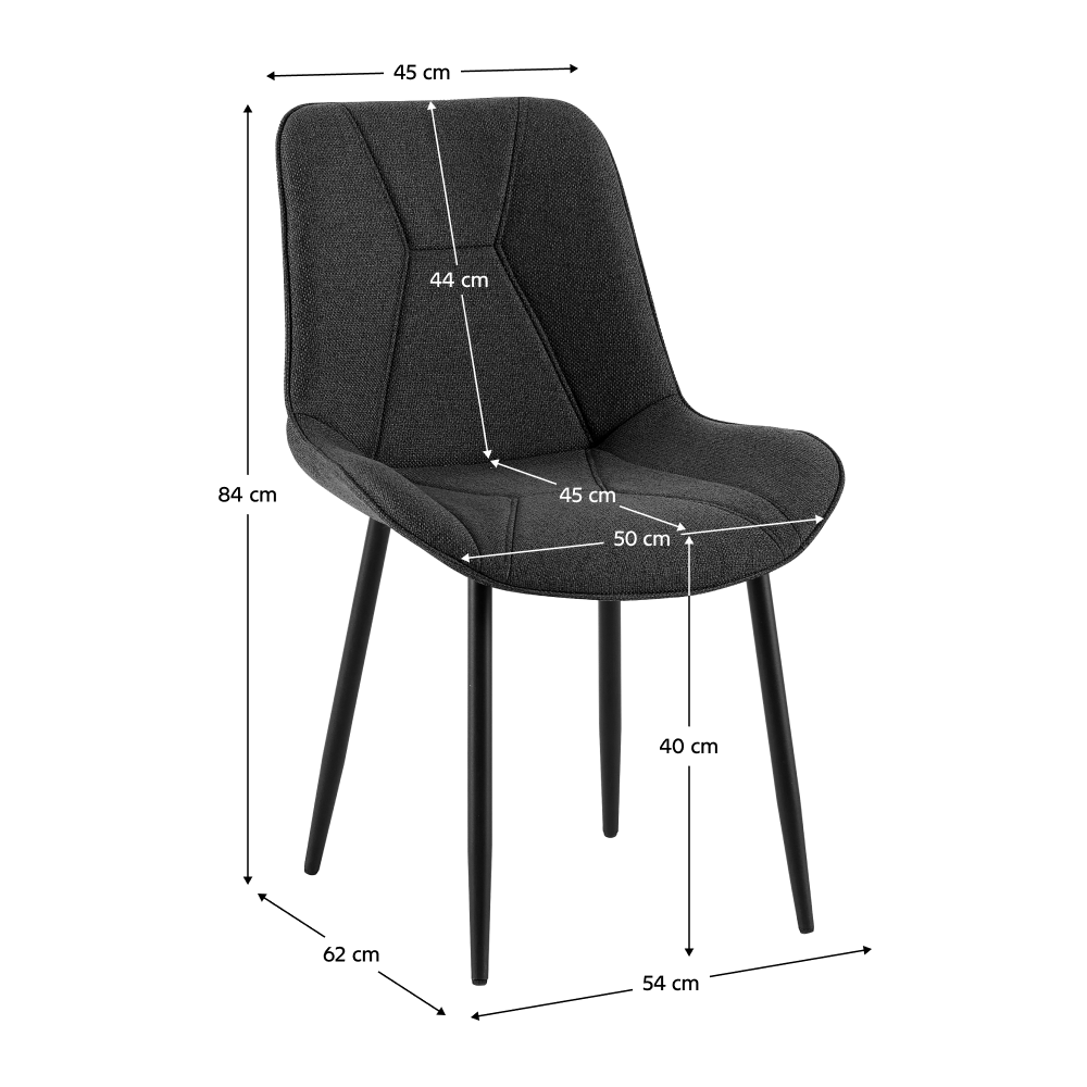Material: ţesătură Lumos 17/metal Rezistenţa ţesăturii la frecare conform testului Martindale: 80 000 de cicluri de frecare Culoare: gri închis/neagră Dimensiuni (lxAxh): 54x62x84 cm Înălţimea părţii de şezut: 40 cm Adâncimea părţii de şezut: 45 cm Lăţimea părţii de şezut: 50 cm Lăţime spătar: 45 cm Înălţime spătar: 44 cm Portanţă: 100 kg Greutate: 4 kg De sufragerie Cusături decorative Design modern Livrat dezasamblat