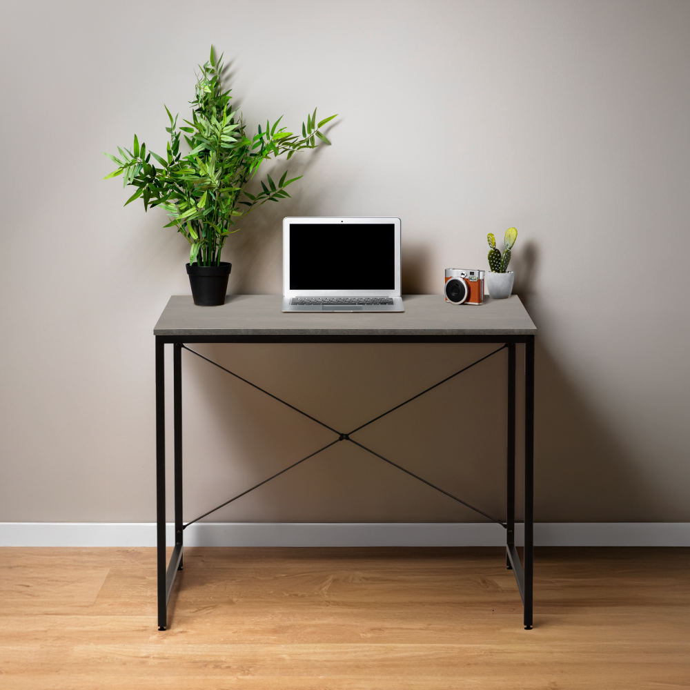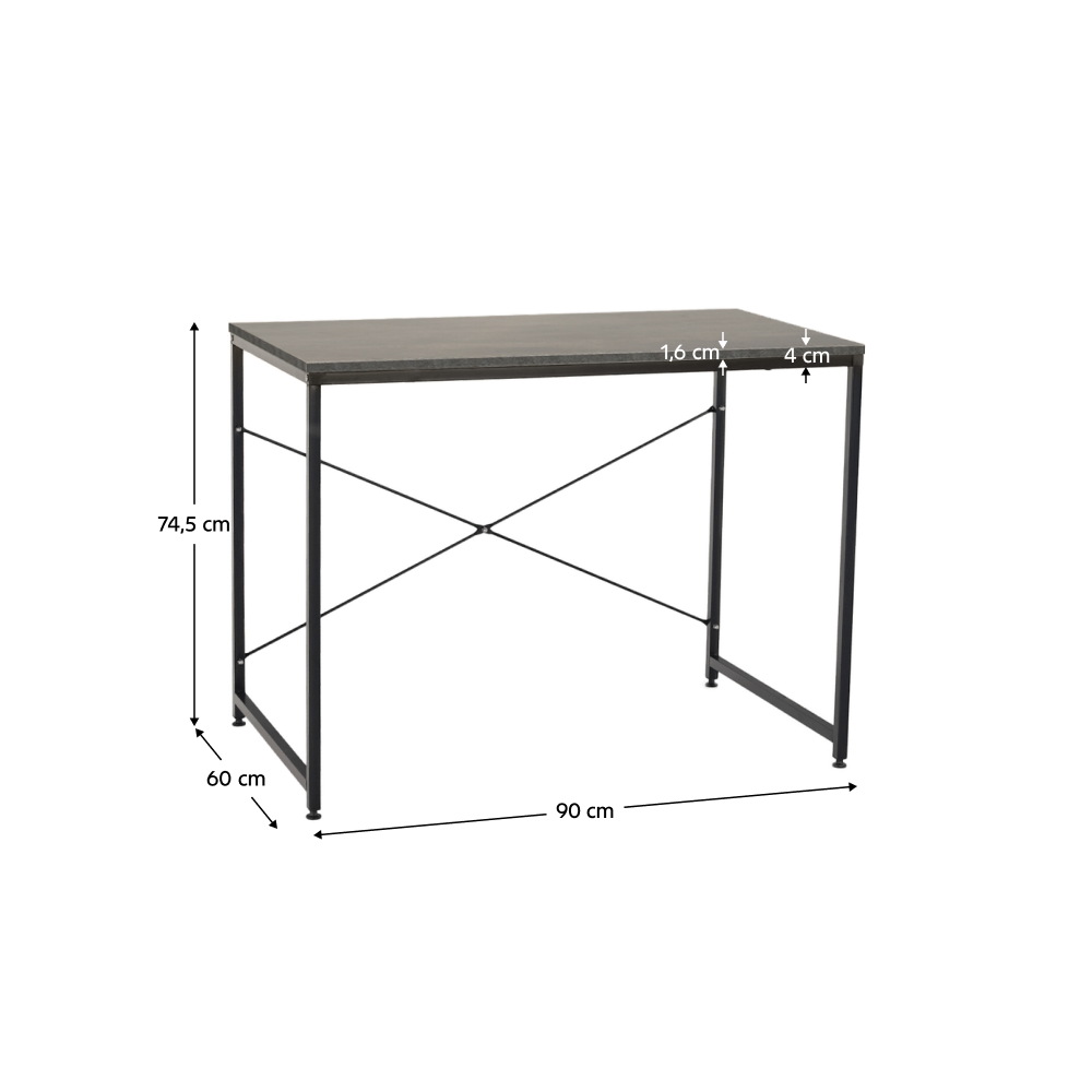 Birou, beton/negru, 90x60 cm, MELLORA