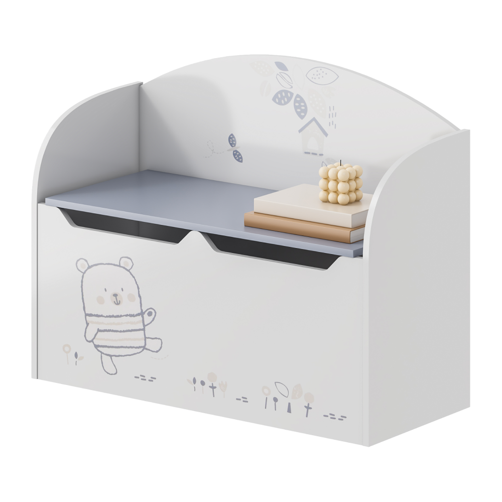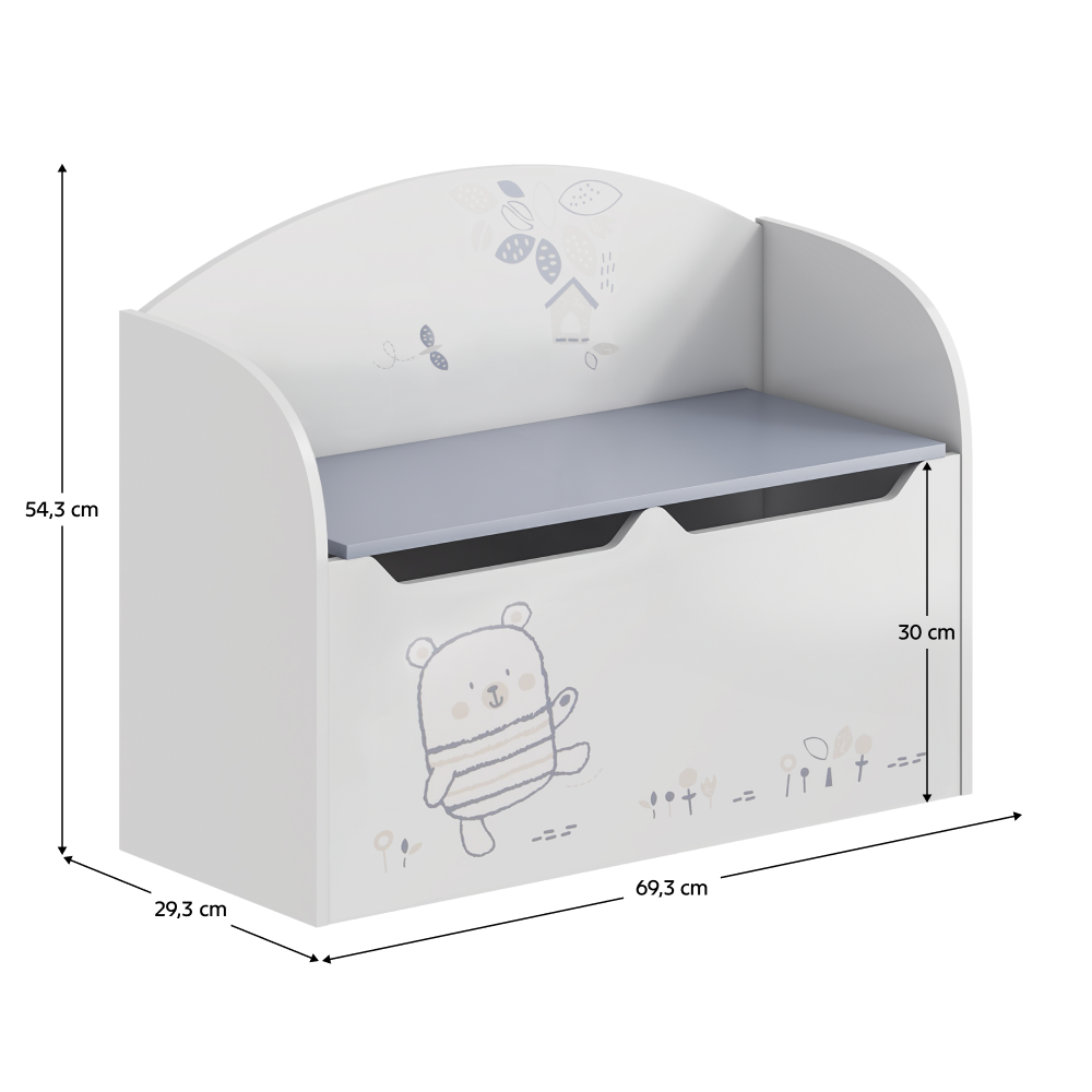 Cutie pentru jucării cu spaţiu de depozitare, alb, BEAR