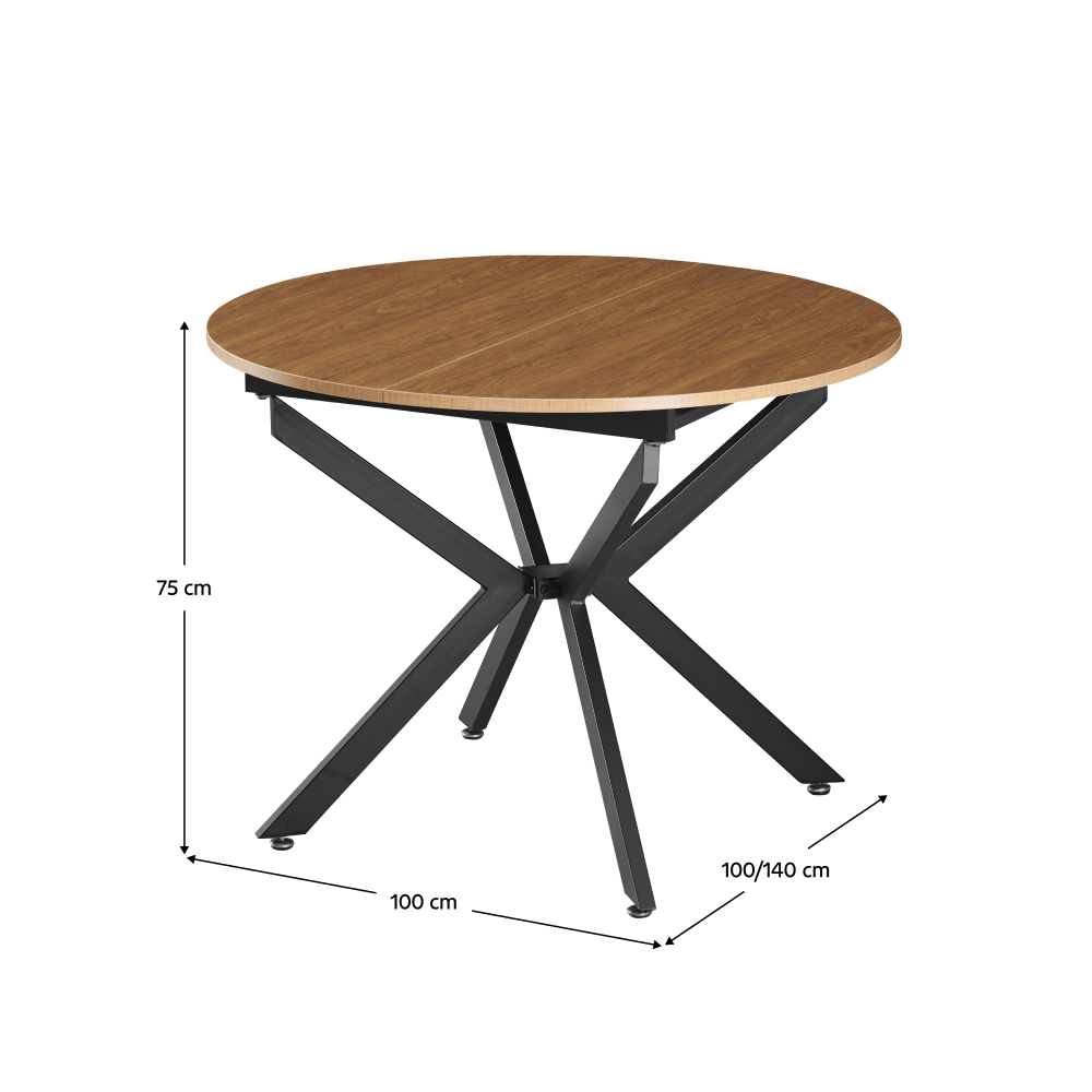 Masă extensibilă de dining, stejar deschis/neagră, 100x100-140x75 cm, ABERO TIP 1