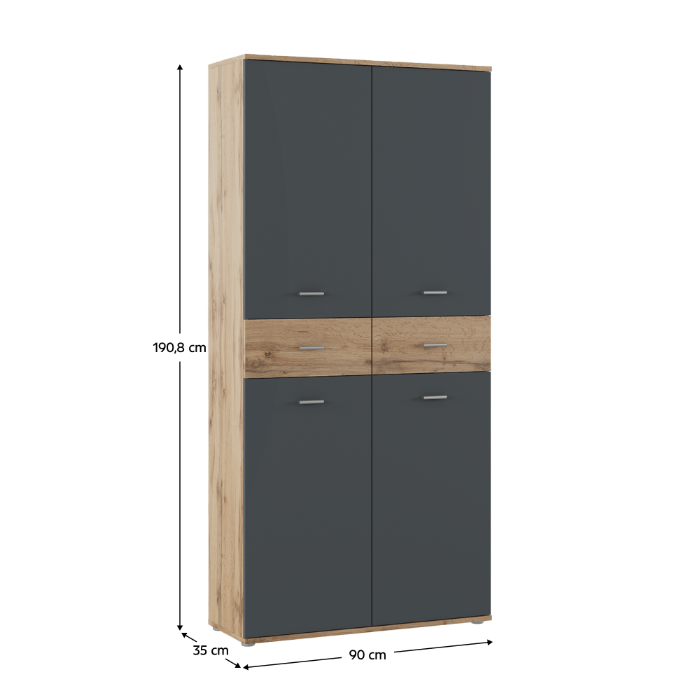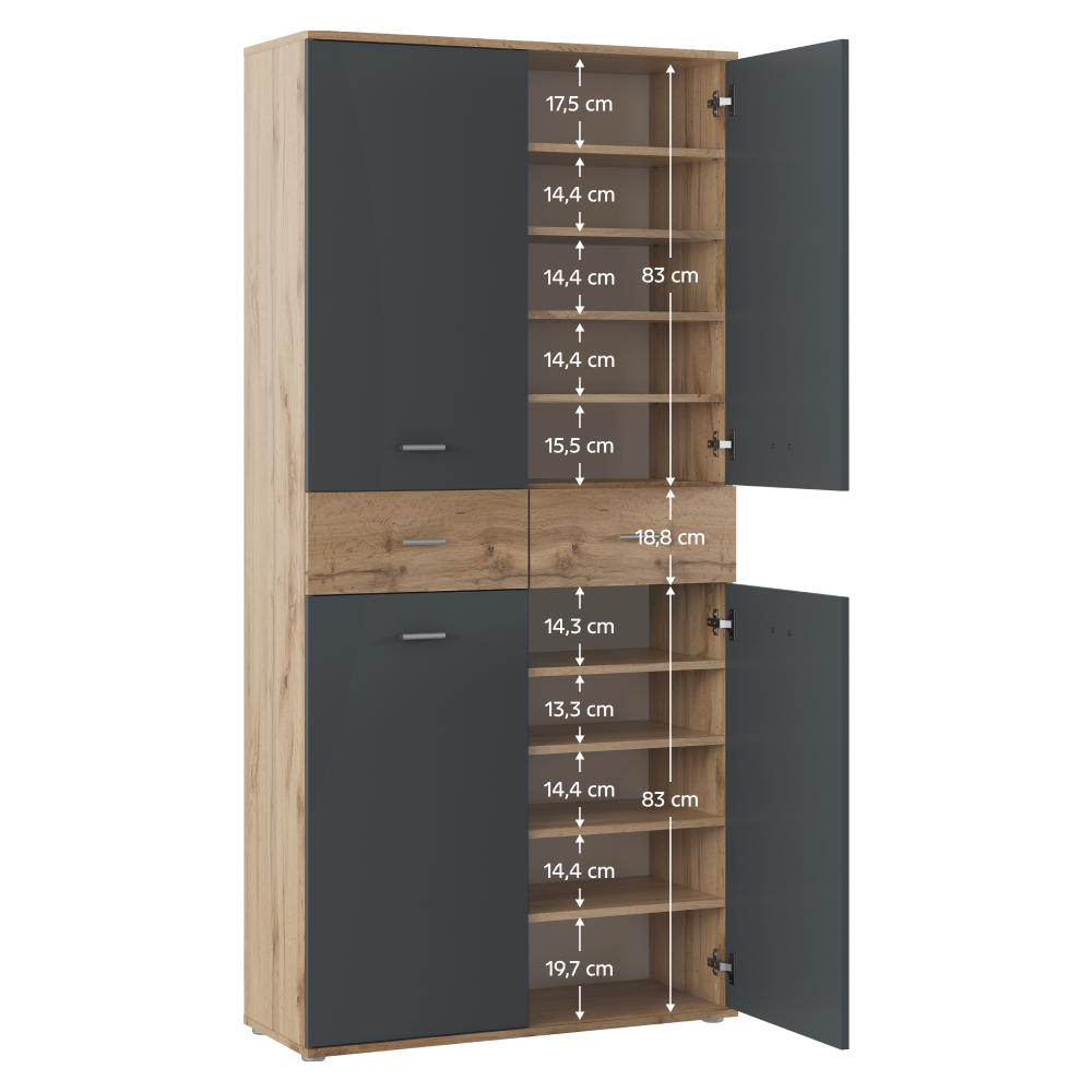 Dulap pantofar/raft, grafit/stejar wotan, VILOT