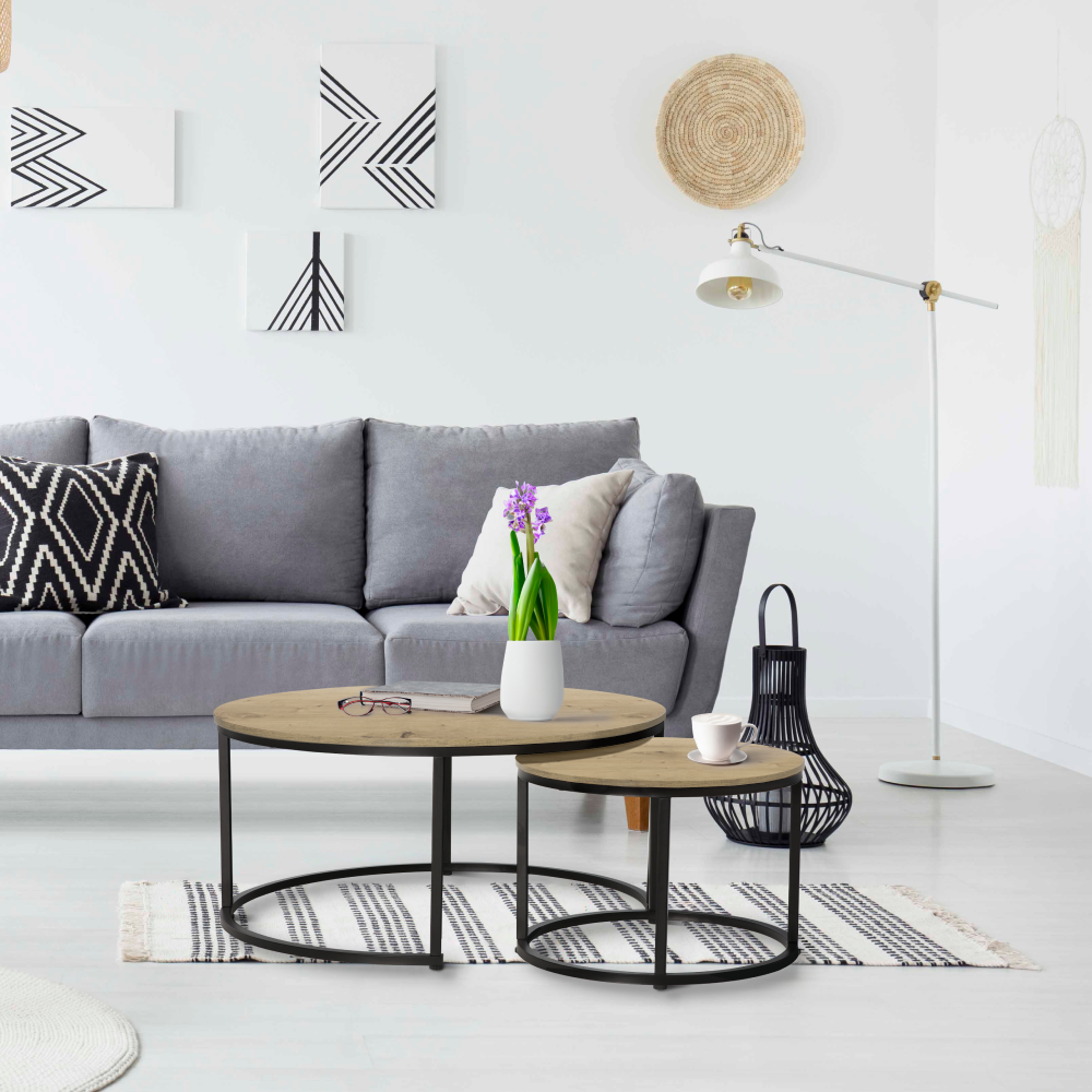 Măsuţe de cafea, set de 2, stejar/negru, CIRKO
