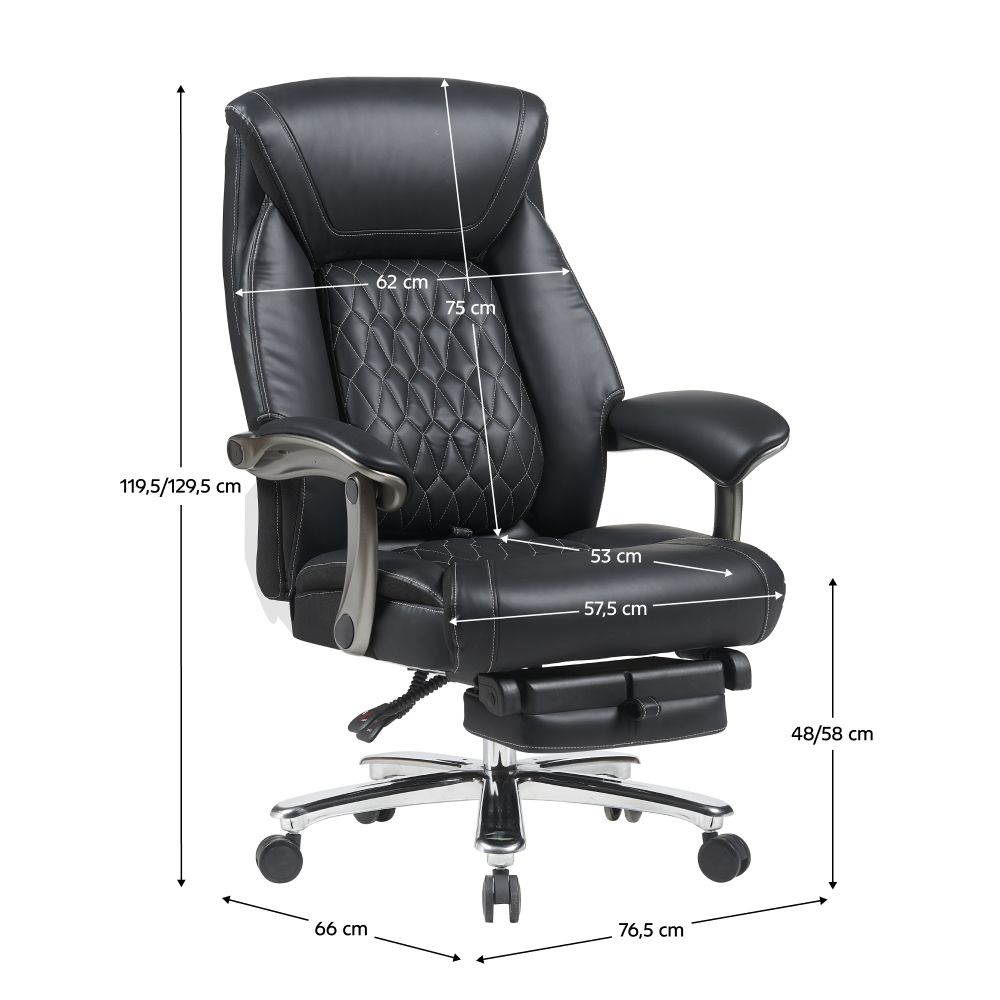 Fotoliu de birou, piele ecologică neagră/crom, portanţă 150 kg, URIEN