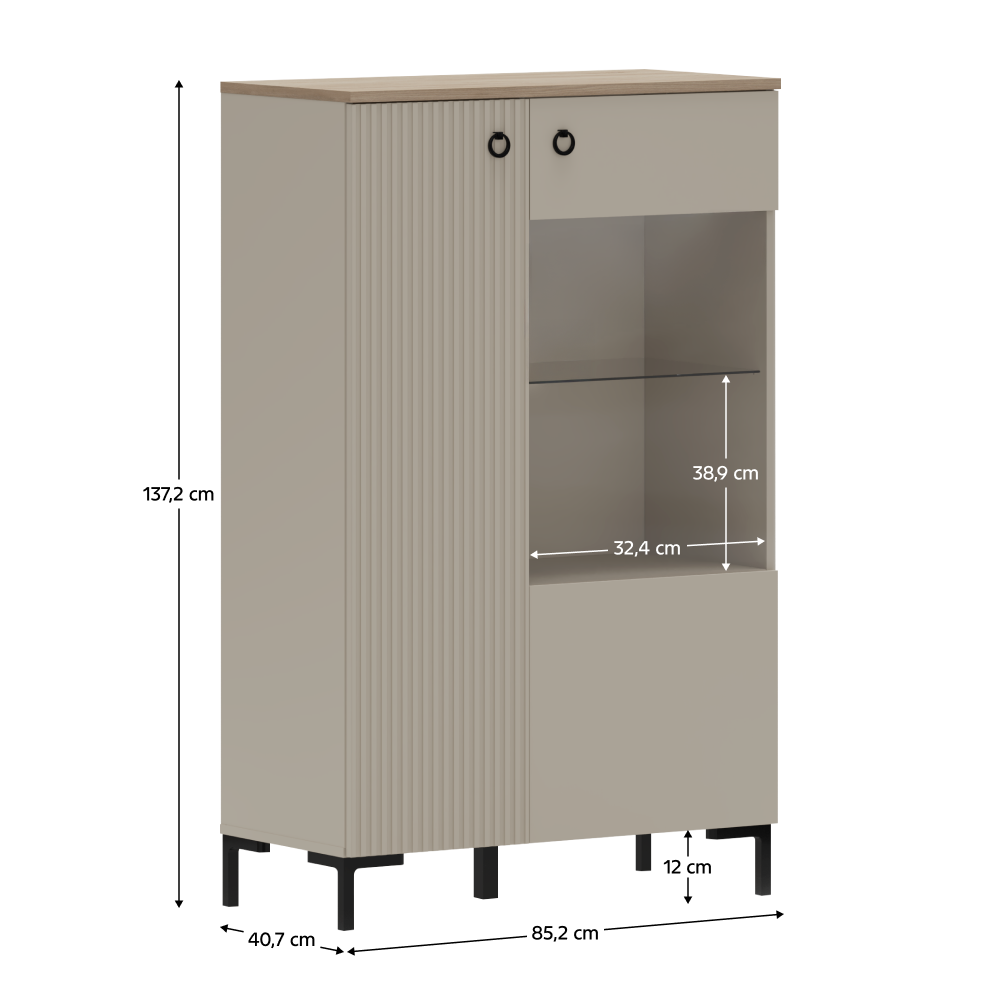 Vitrină joasă, gri-maroniu Taupe/stejar silverjack, DOMCA 1D1W/140