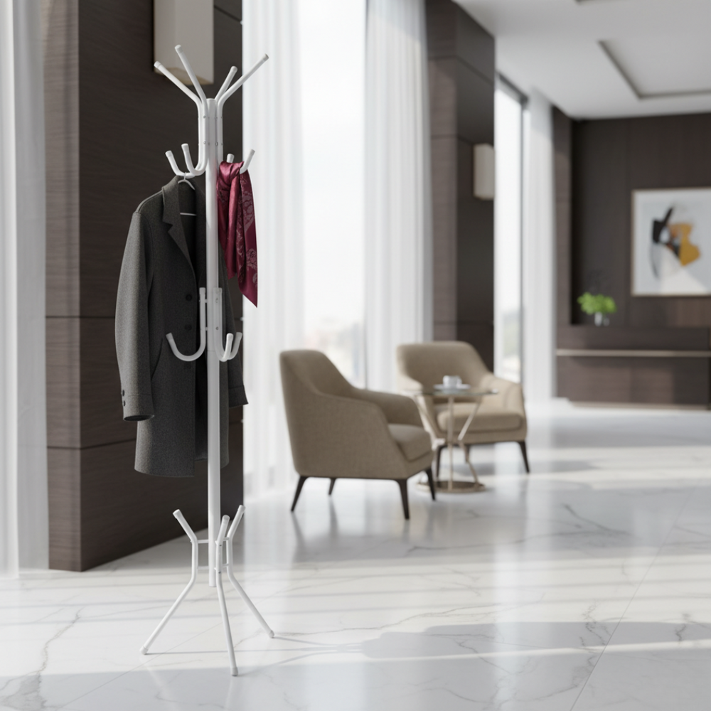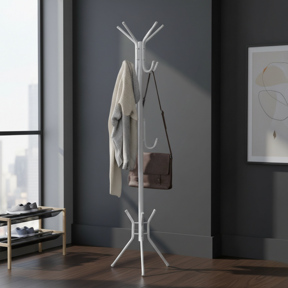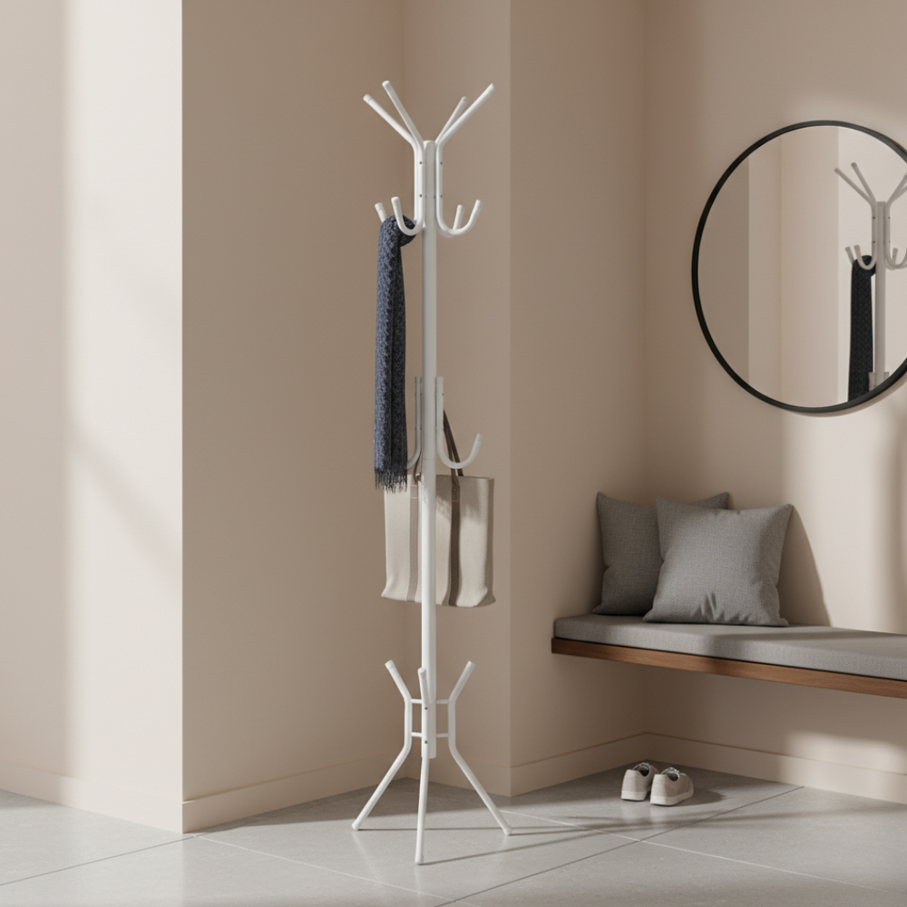 Material: plastic Culoare: albă Dimensiuni (lxAxh): 36,5x36,5x176 cm Cu cârlige Portanţă cârlig: max. 2 kg Simplu Practic Livrat dezasamblat