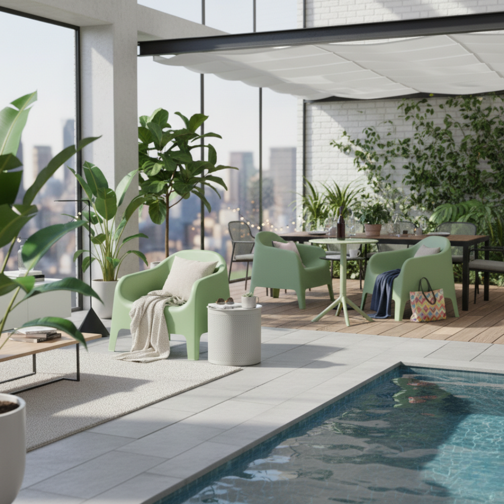 Scaun stivuibil, verde, plastic, SOKRA NEW