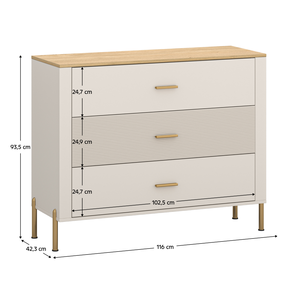 Comodă, caşmir/stejar de piatră, RUNOL 3S