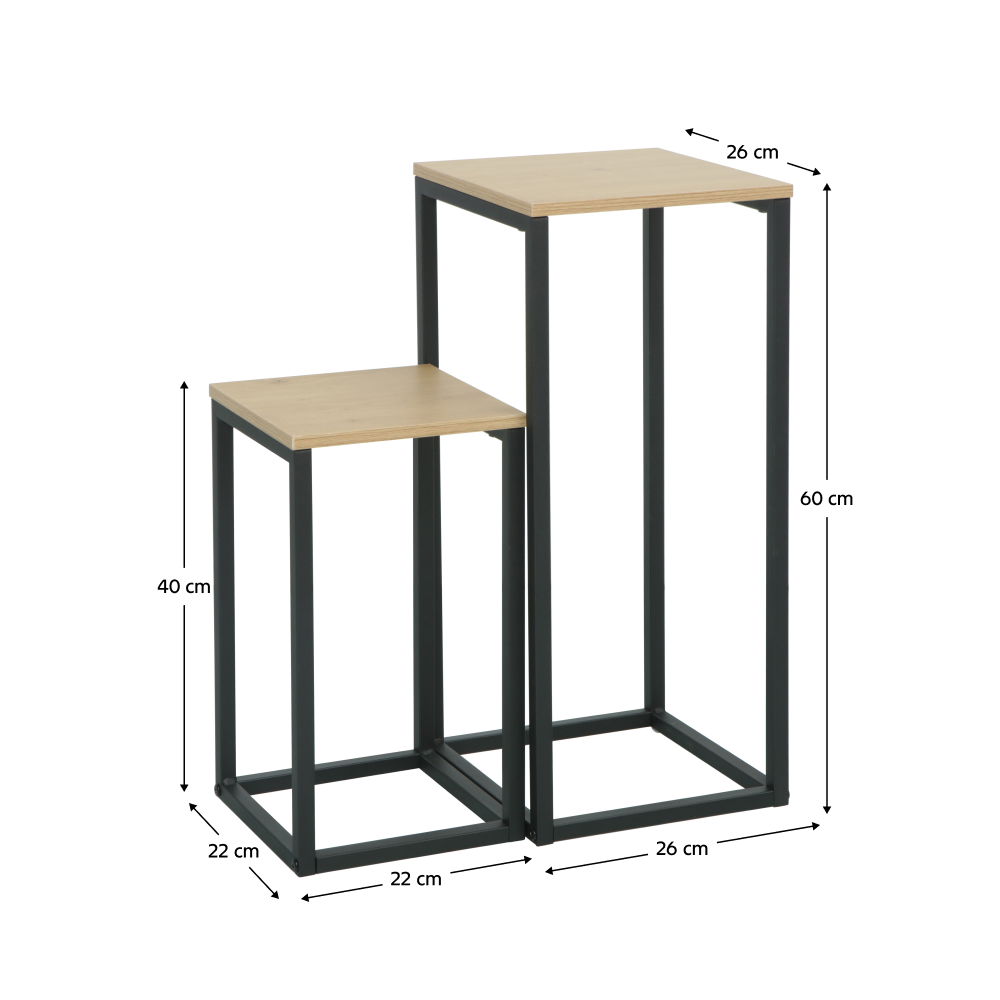 Măsuţe auxiliare, set de 2 buc., stejar/negru, TOLSOS
