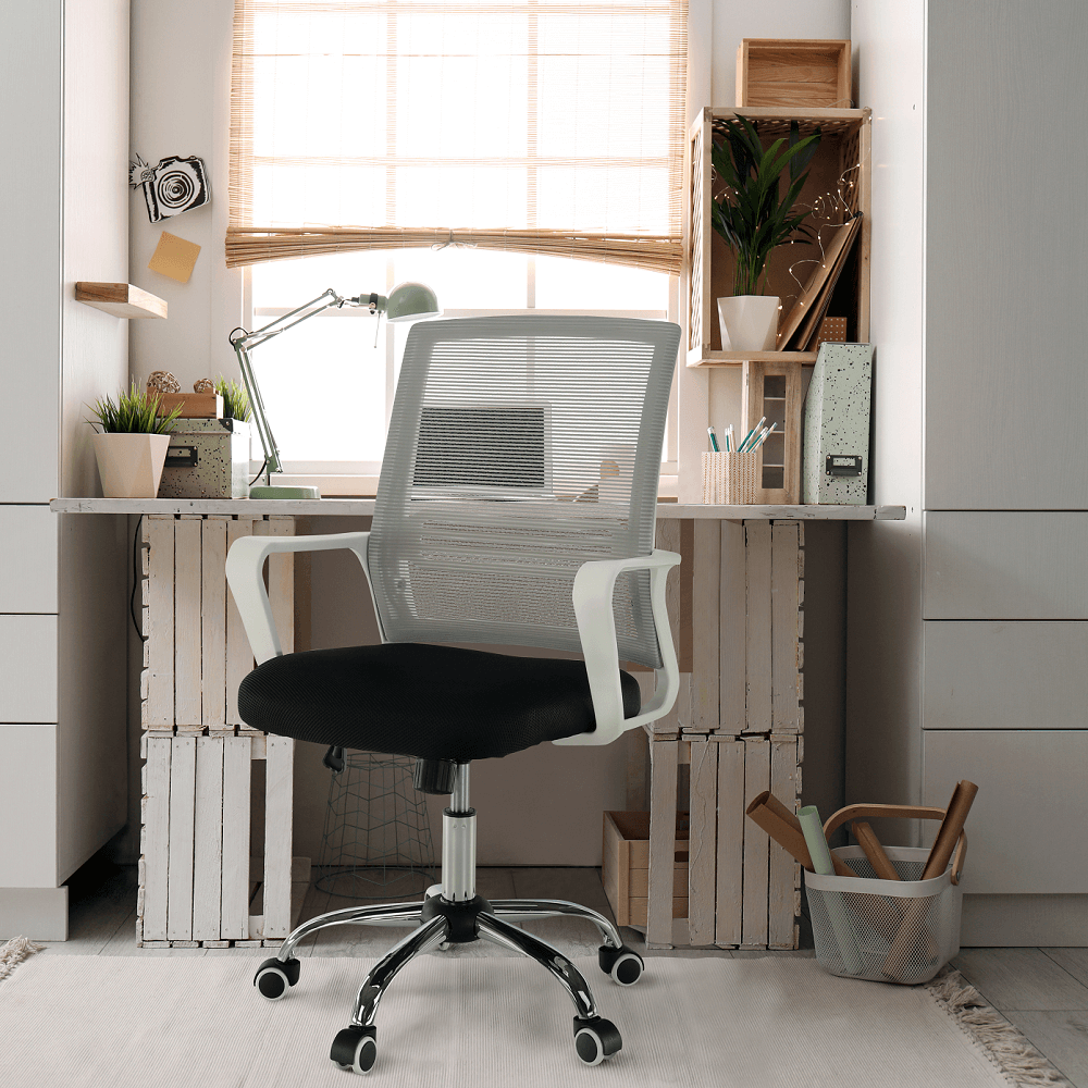 Scaun de birou, plasă gri/ material negru / plastic alb, APOLO 2 NEW
