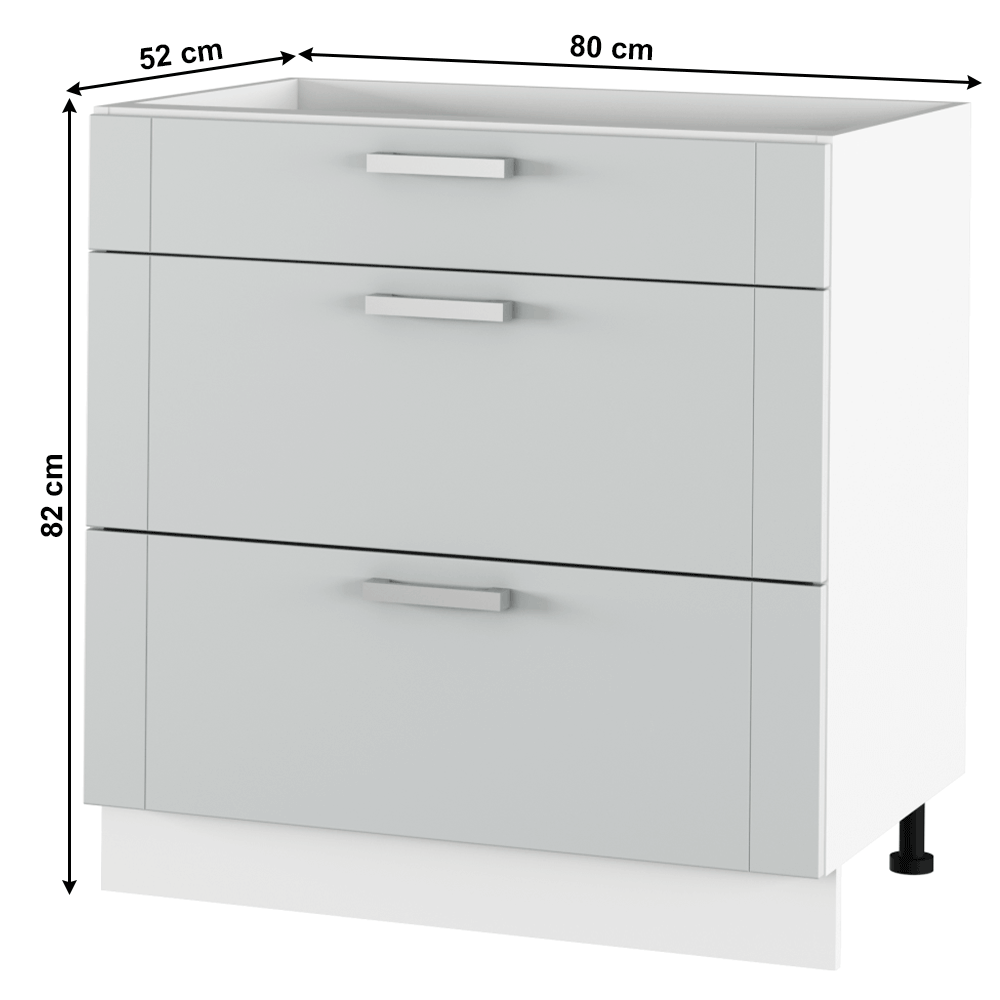 Dulap inferior JULIA TYP 61, Material dulap: PAL melaminat/MDF Culoare dulap: gri deschis/alb Material mâner: metal Culoare mâner: crom mat Dimensiuni (lxhxA): 80x82x52 cm Grosime material: 16 mm Cu sertare Cu picioare Cu mâner metalic Produs slovac de calitate Se livrează demontat Preţul cabinetelor modulare include plinta, fără blatul de lucru. Preţul blatului de lucru este de 223,-/m - grosime 38 mm.