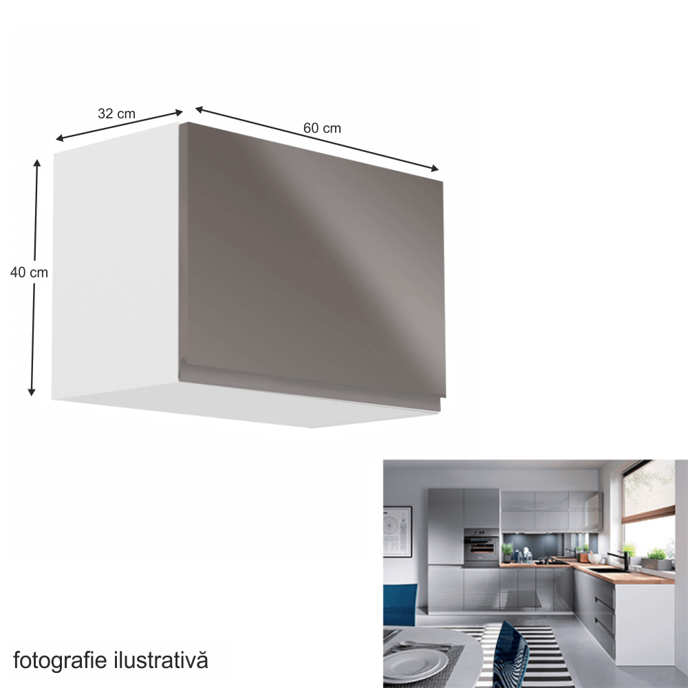 Dulap superior, alb/gri extra lucios, AURORA G50K