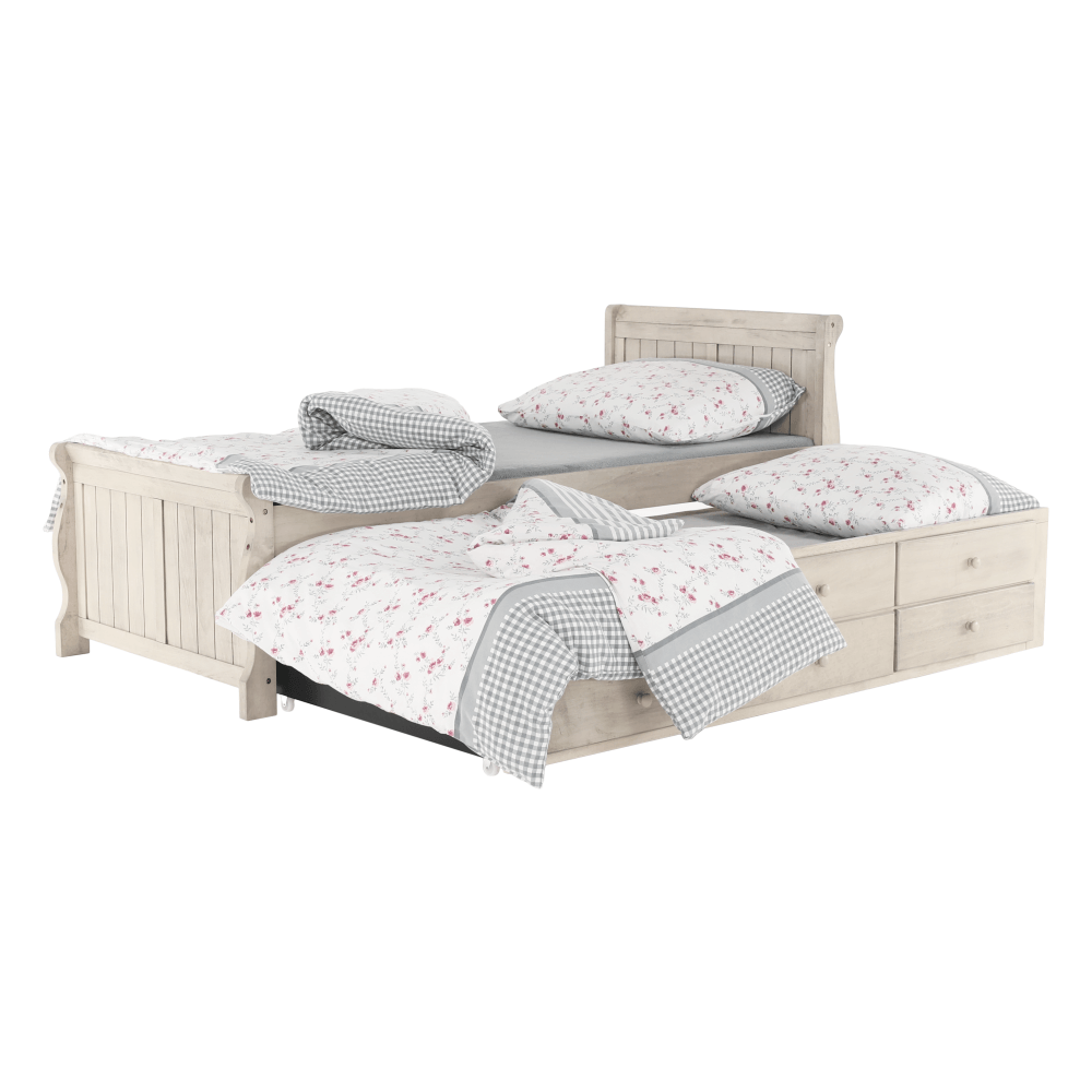 Pat cu pat suplimentar, alb antic, 90x200, ANTIKO