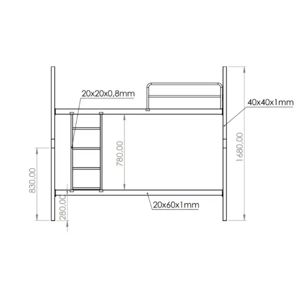 Cadrul patului supraetajat este fabricat din oțel de înaltă calitate, în