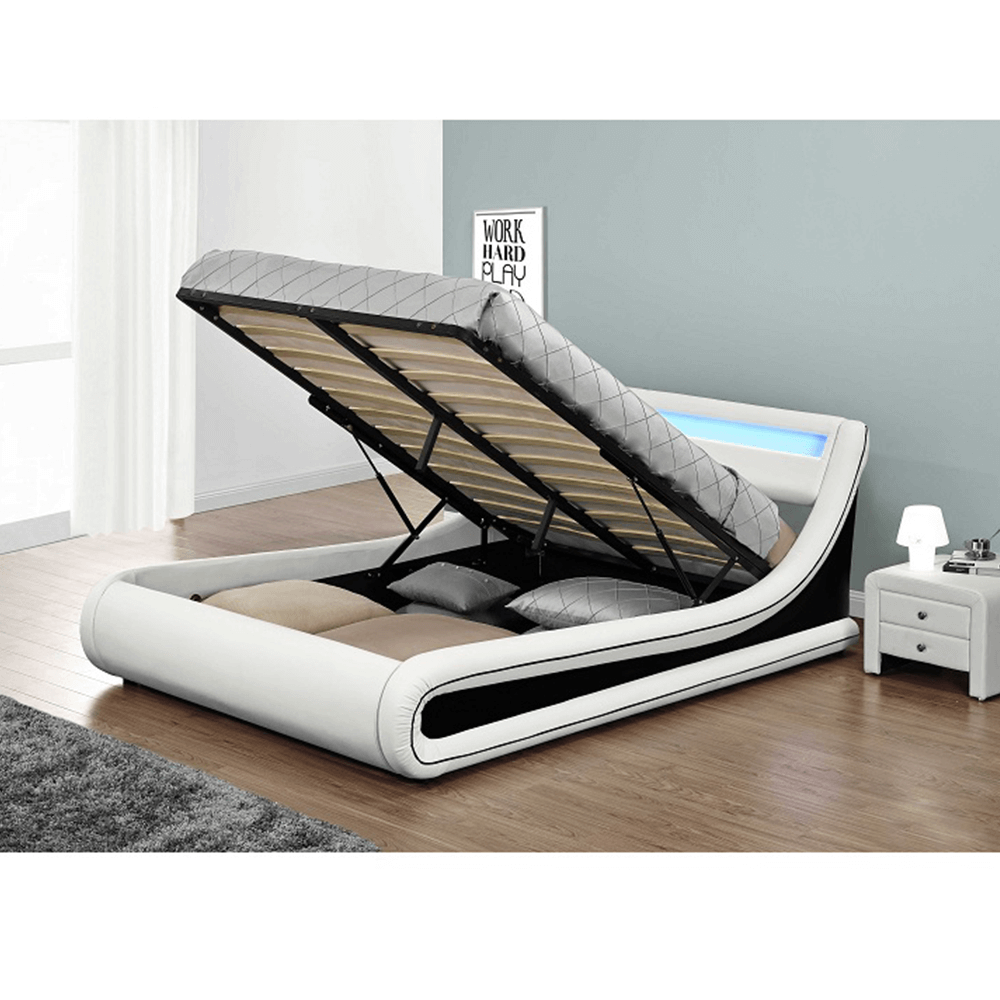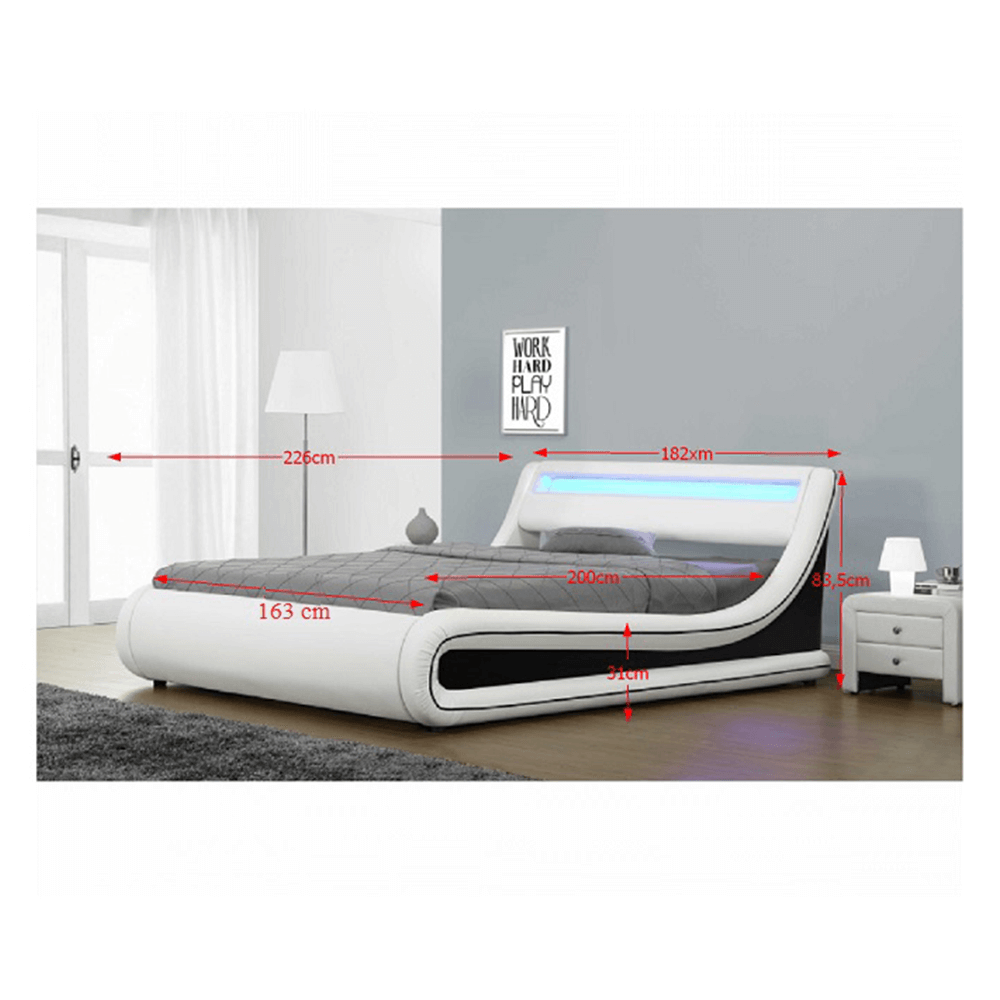 Pat matrimonial cu RGB LED iluminare, alb/negru, 160x200, MANILA NEW