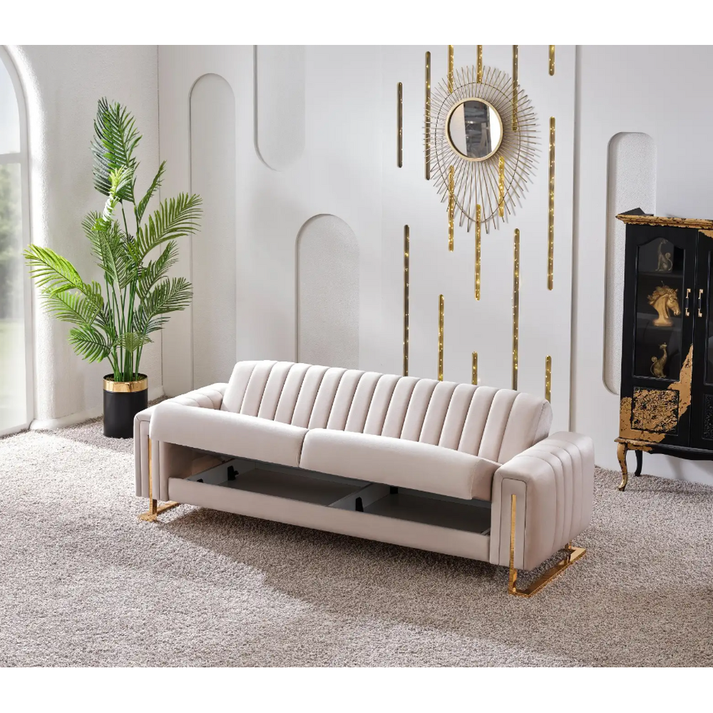 Mecanismele de extensia canapelei sunt de tip Zero Wall, lucru ce contribuie la o manevrare facila, ori de cate ori vrei sa o extinzi sau pliezi.Picioarele inalte completeaza cadrul acesteia si contribuie la crearea unui aer mai boem si mai armonios.