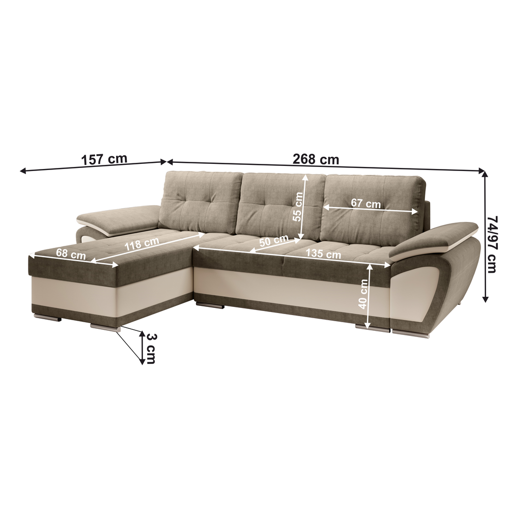 Canapea extensibilă, bej/maroniu deschis, stânga, ENIF ROH