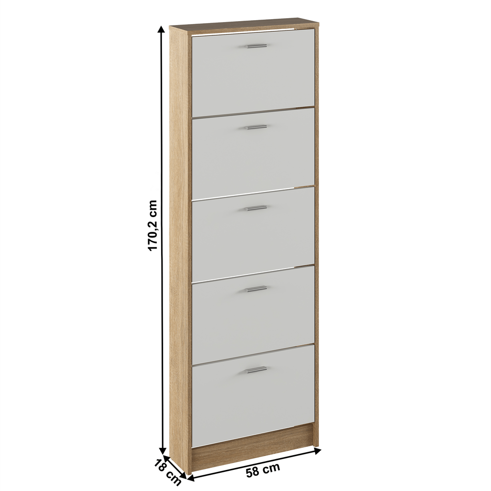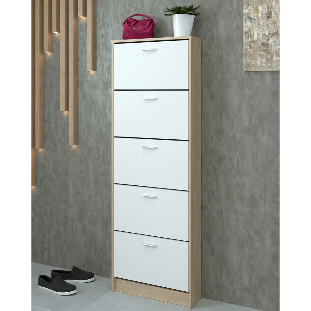 Dulap pantofi, 5 rafturi, stejar sonoma/ alb, MOBI 15