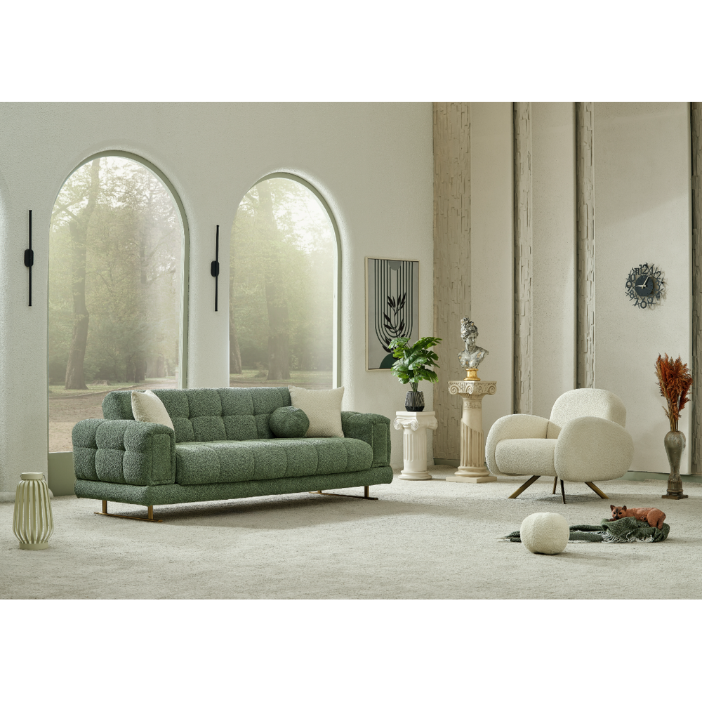 Disponibilă in mai multe nuanțe sofisticate tapitata cu stofa Boucle, cu