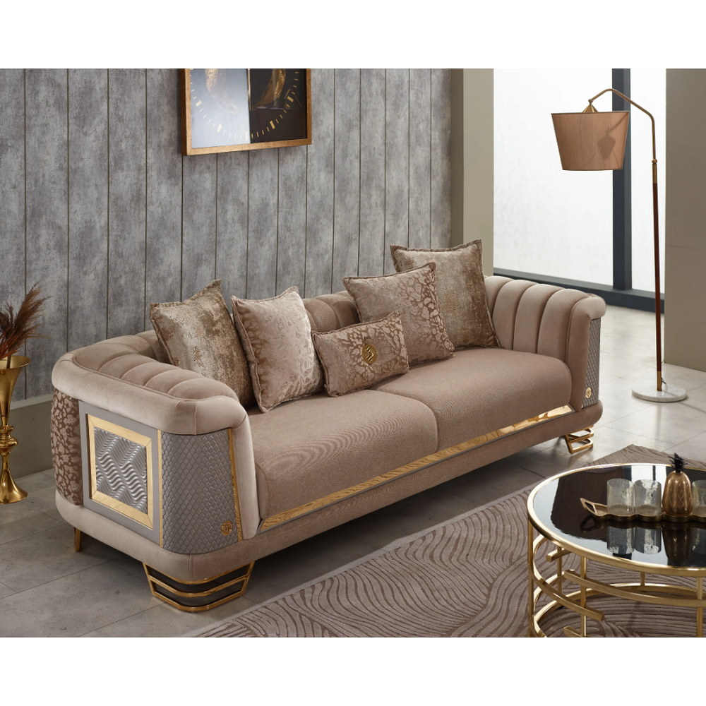 Canapeaua fixa 3 locuri de lux Romans pastreaza conceptul nobil si adapteaza linia modelului la tendintele moderne de design avangardist.