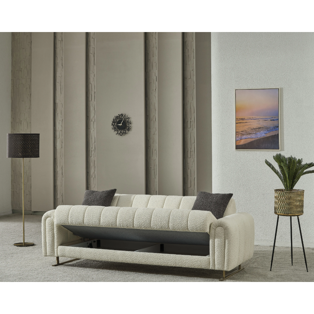 plus, canapeaua este dotată cu o ladă de depozitare ingenios integrată, care