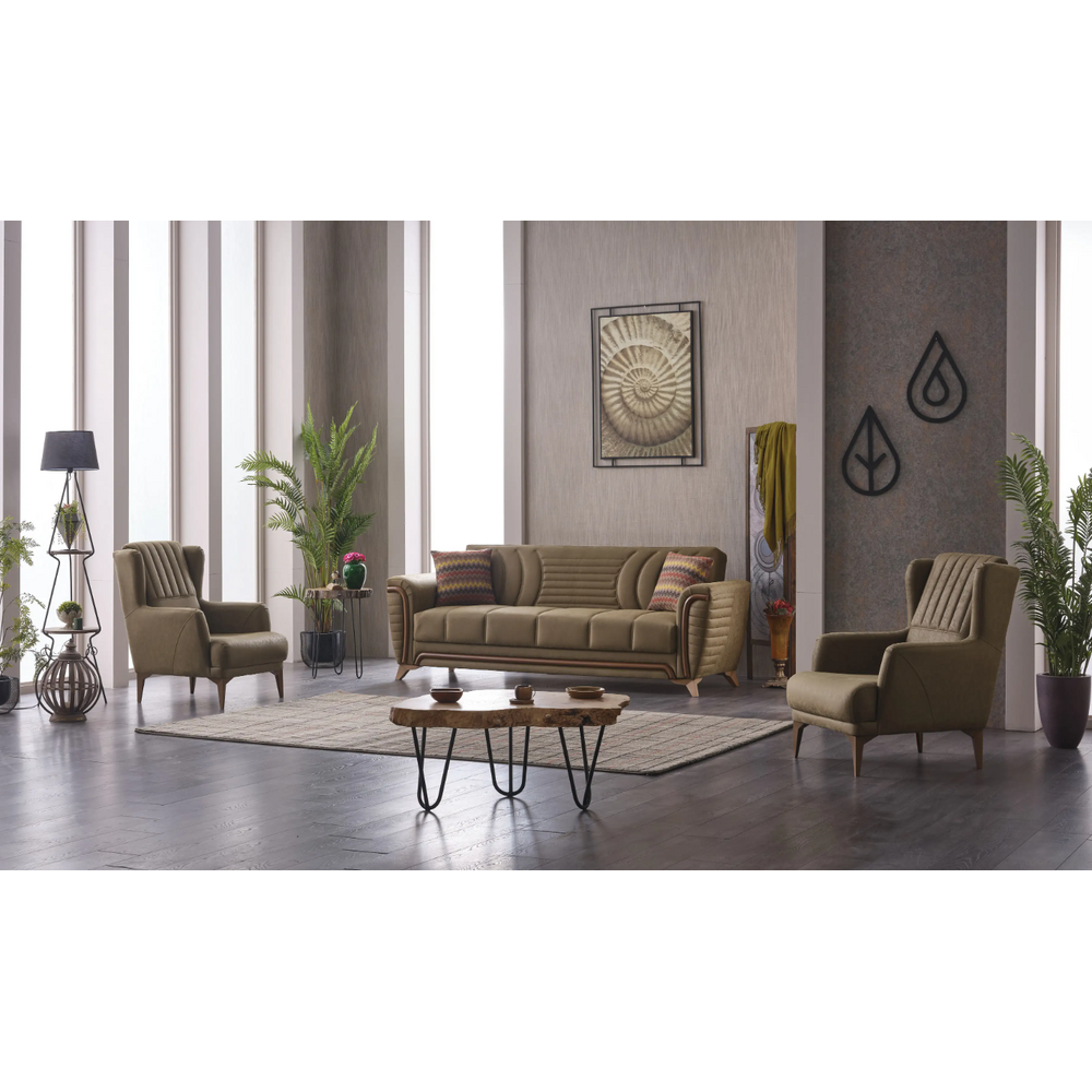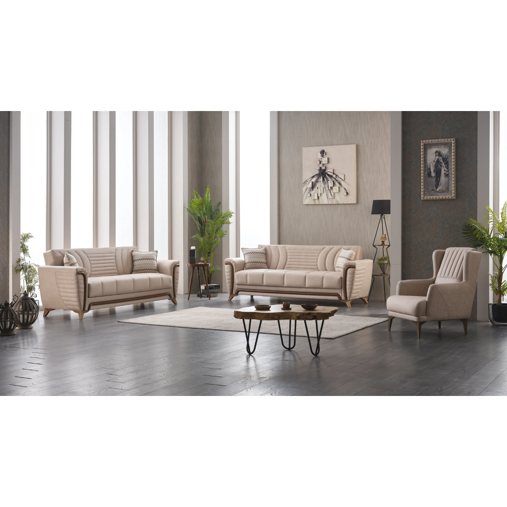 fotoliu Berjer Torino. Cromatica blanda este completata de o serie de elemente