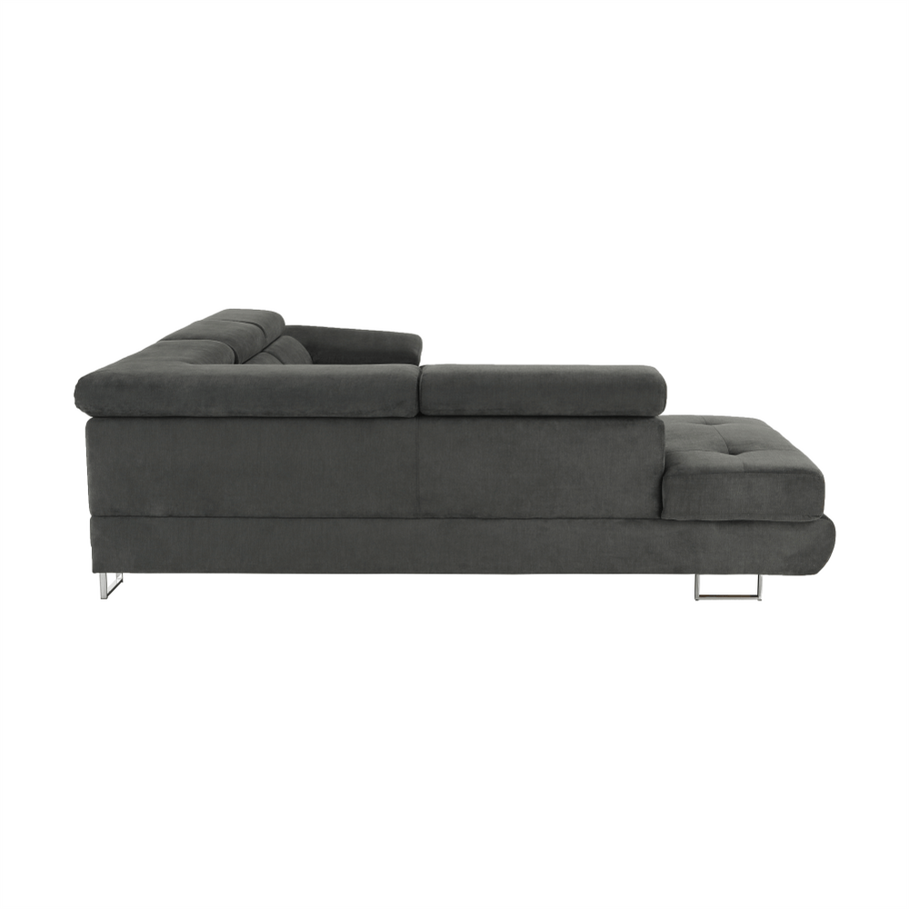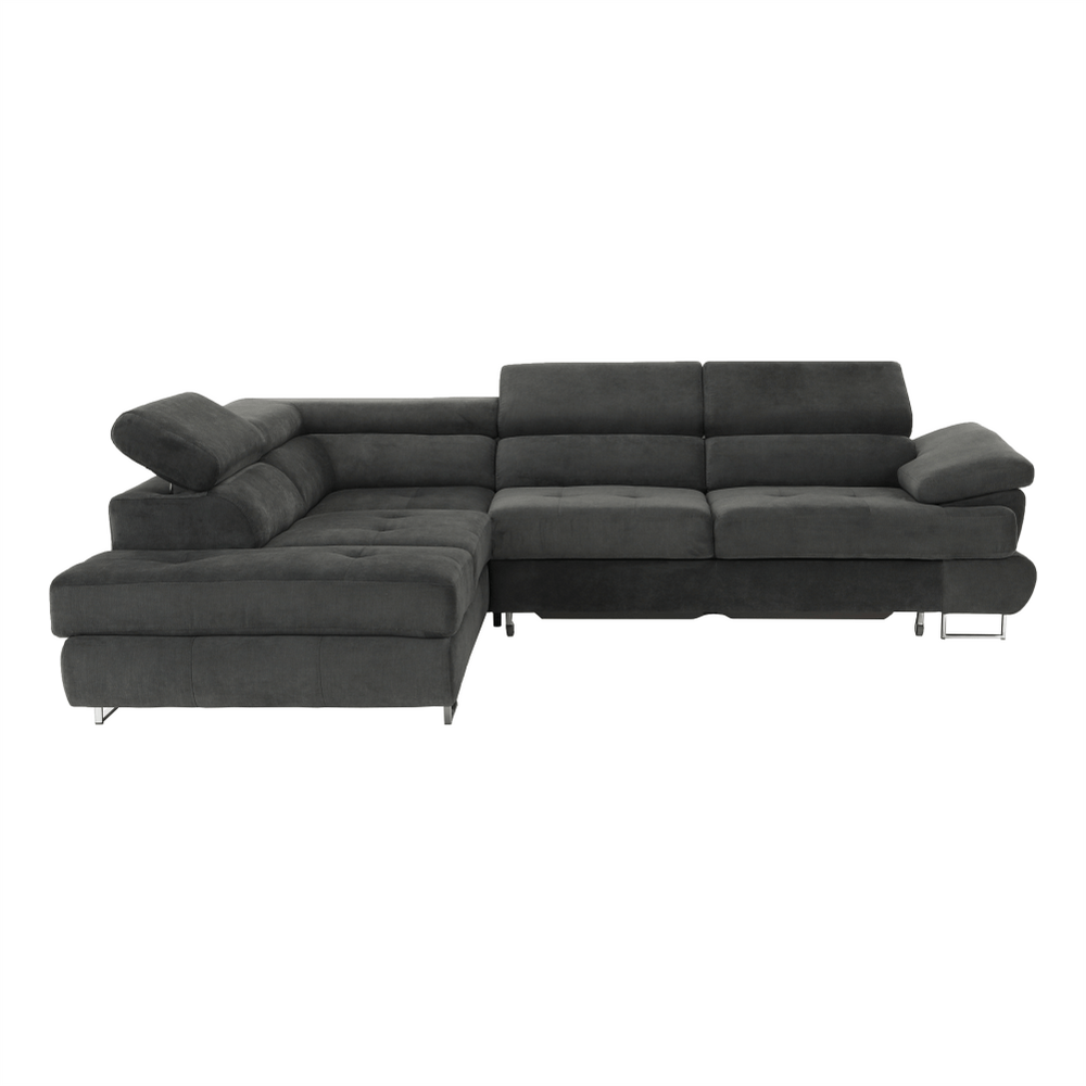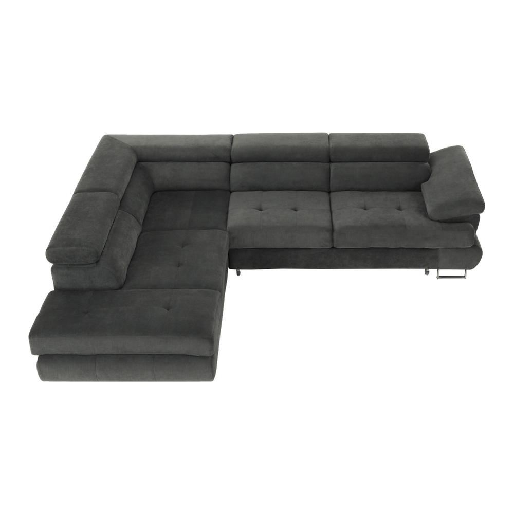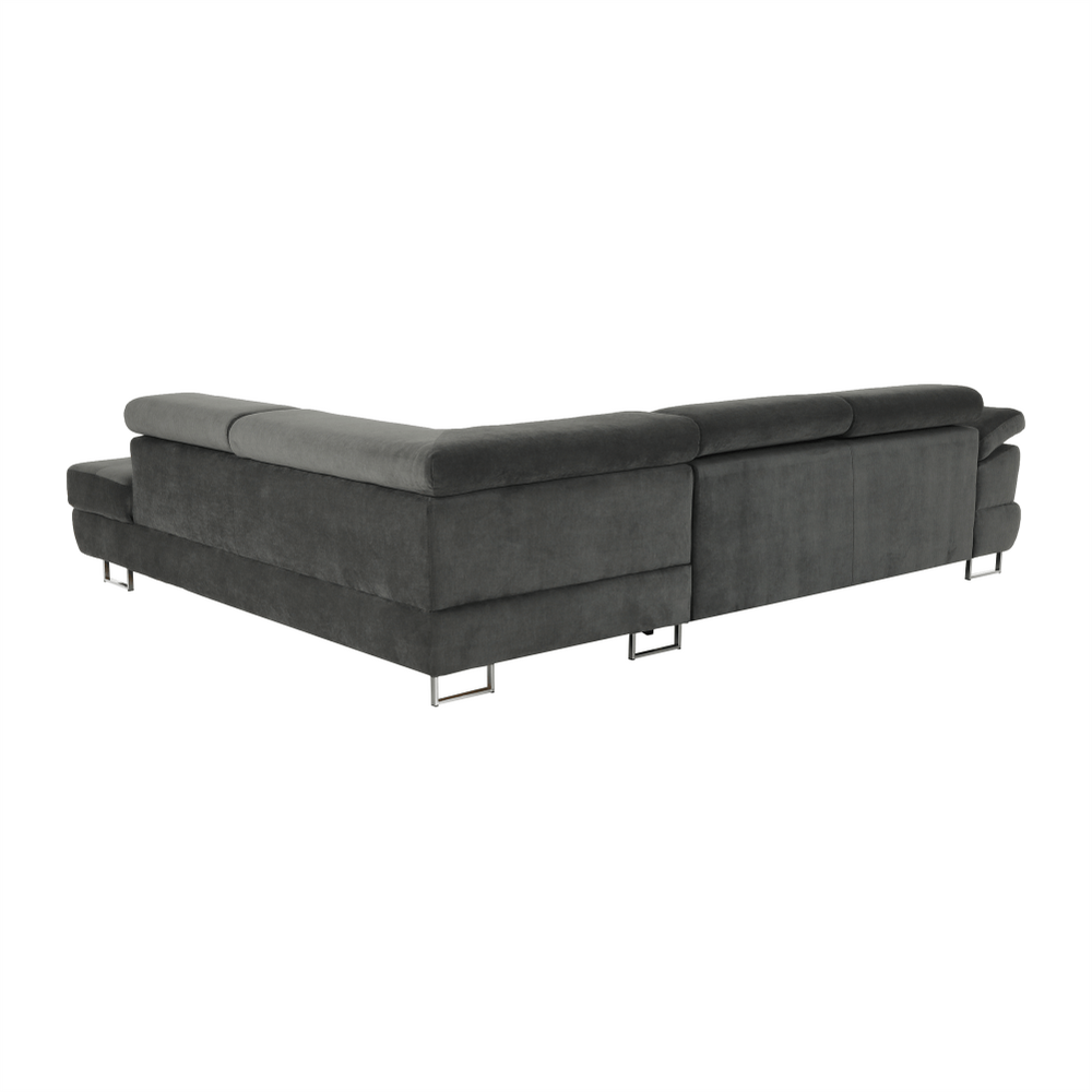 Material: ţesătură Soro 97 Rezistenţa la frecare a ţesăturii conform testului Martindale: 90.000 - 100.000 de cicluri Culoare: gri Dimensiuni (LxAxÎ): 275x225x71/85 cm. Înălţime scaun: 40 cm Adâncime scaun: 59 cm Înălţimea compartimentului inferior de la podea: 9 cm Înălţime spătar: 32/50 cm Adâncime spătar în poziţie înclinată: 41 cm Cotieră (AxÎ): 105x62/69 cm Suprafaţa de dormit: 125x200cm Lăţime otoman: 104 cm Capacitate de încărcare: 90 kg Colţar, Extensibilă, Cu spaţiu de depozitare, Cusături decorative, Spătar interesant, 3 tetiere ajustabile, 5 grade de poziţionare a tetierelor, Tapiţată integral, Umplutură: arcuri, Picioare metalice cu finisaj cromat, Variantă pentru partea stânga, Setul nu include perne decorative, Livrată dezasamblată, Vă oferim posibilitatea de a alege dintre 7 nuanţe de culoare ale ţesăturii Soro, conform catalogului de mostre. Vă rugăm să specificaţi alegerea dumneavoastră direct în notele din comandă. Preţul canapelei pentru o comandă personalizată este de 7.359,- în varianta cu rabatare şi spaţiu de depozitare BUTON R şi de 7.699,- în varianta fixă fără spaţiu de depozitare BUTON P şi de 7.099,-. Pentru comenzi personalizate este necesară plata unui avans de 10% din suma totală. După achitarea avansului, comanda dumneavoastră va intra în producţie. Termenul de livrare este de 6-8 săptămâni.