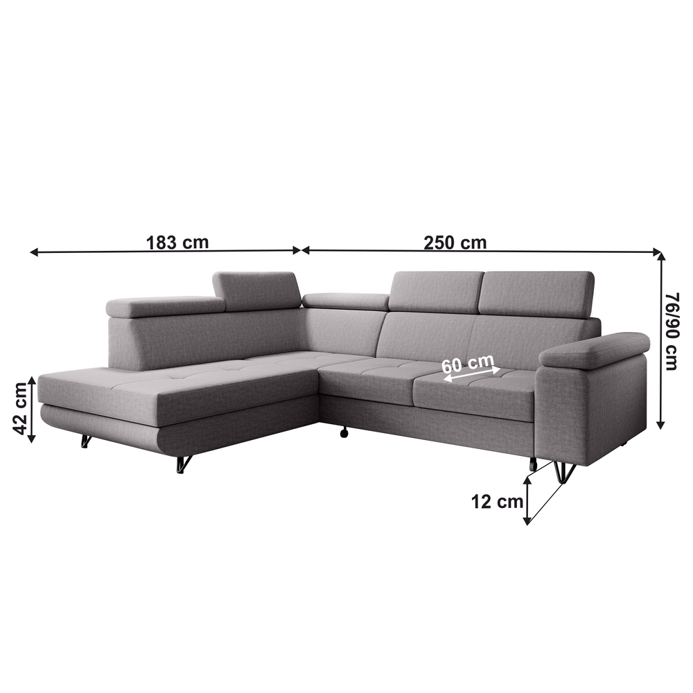 Canapea extensibilă, gri deschis, stânga, JOGI ROH