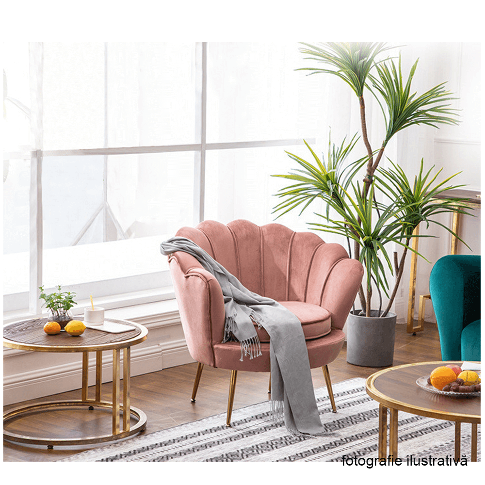 Fotoliu în stil Art-deco, catifea Velvet roz/crom auriu, NOBLIN