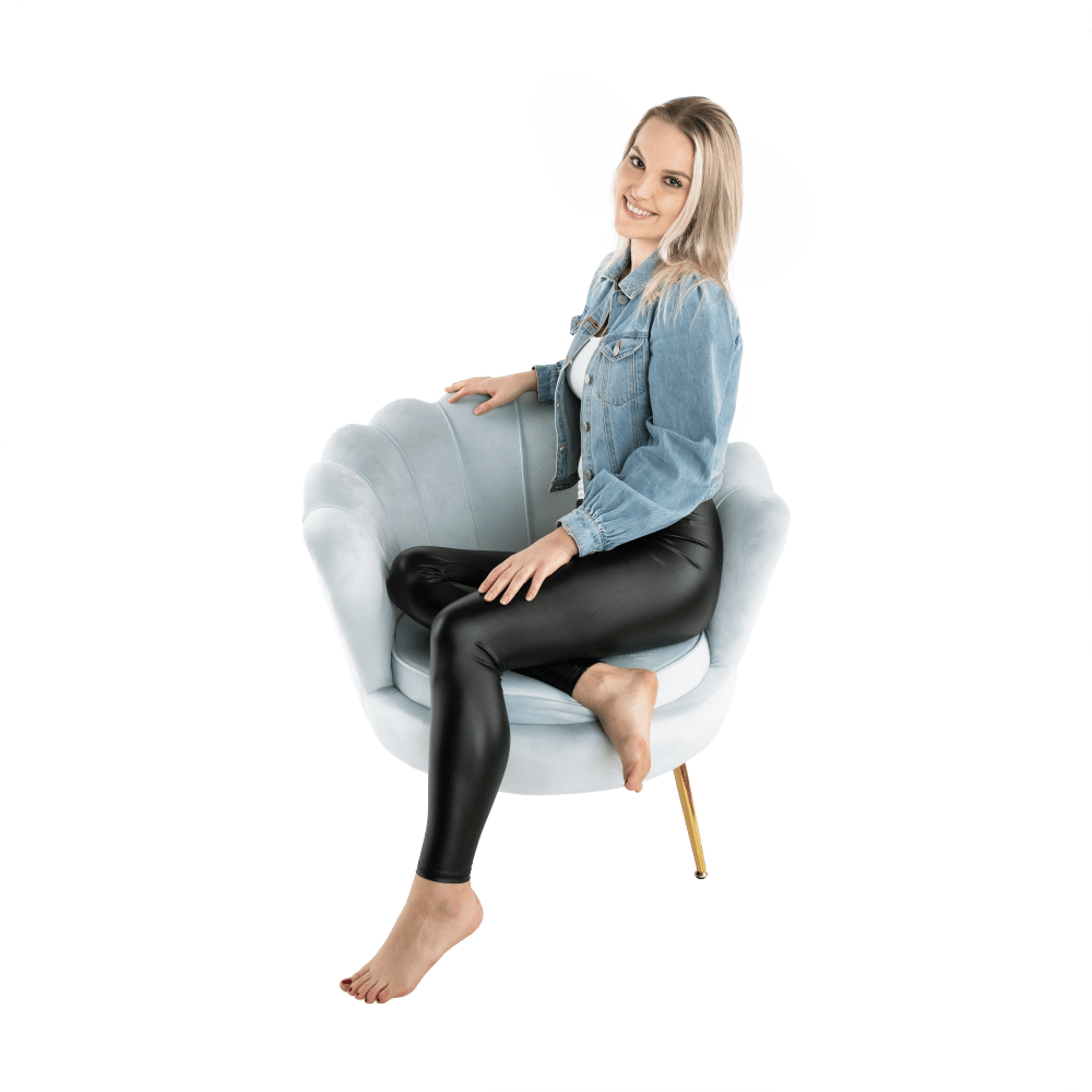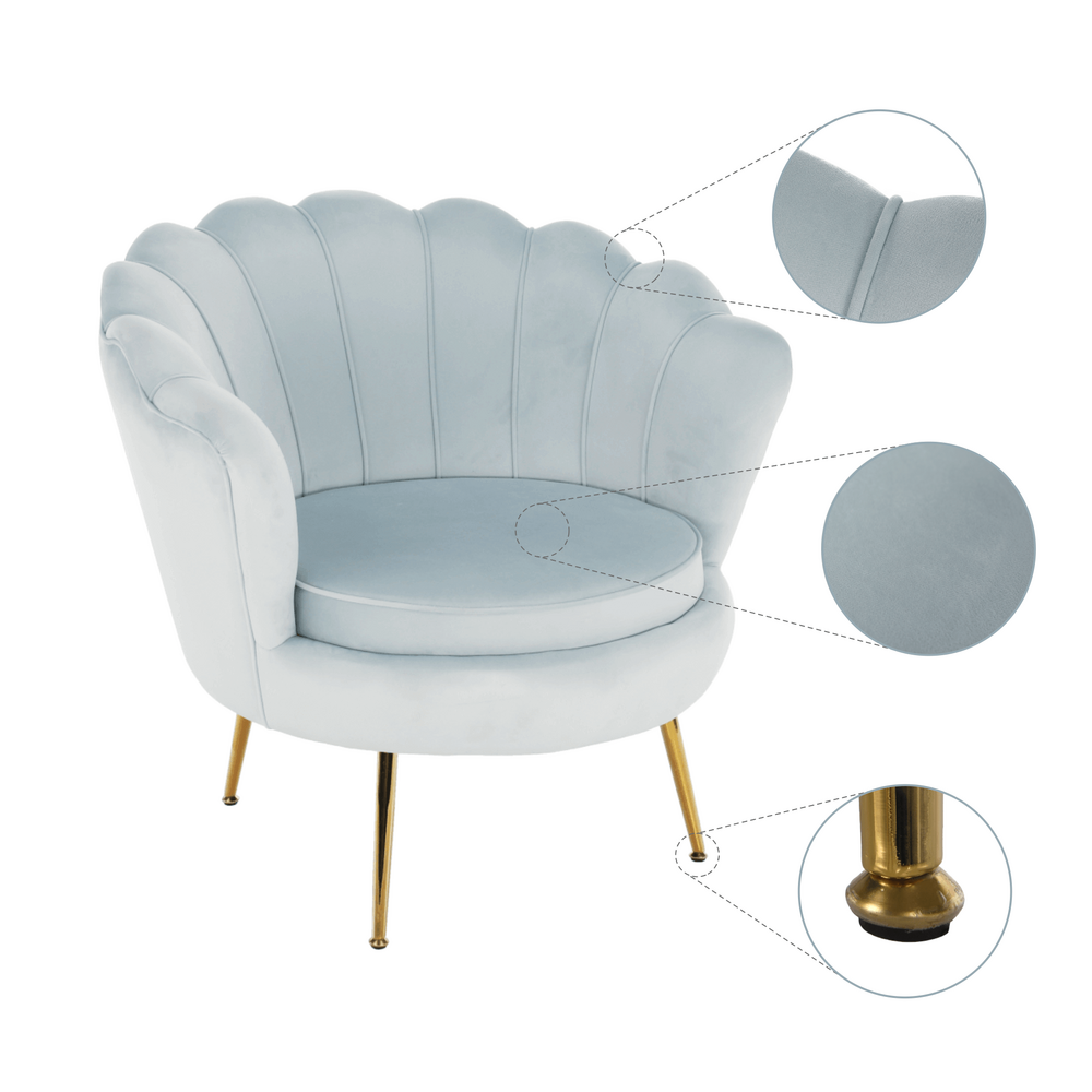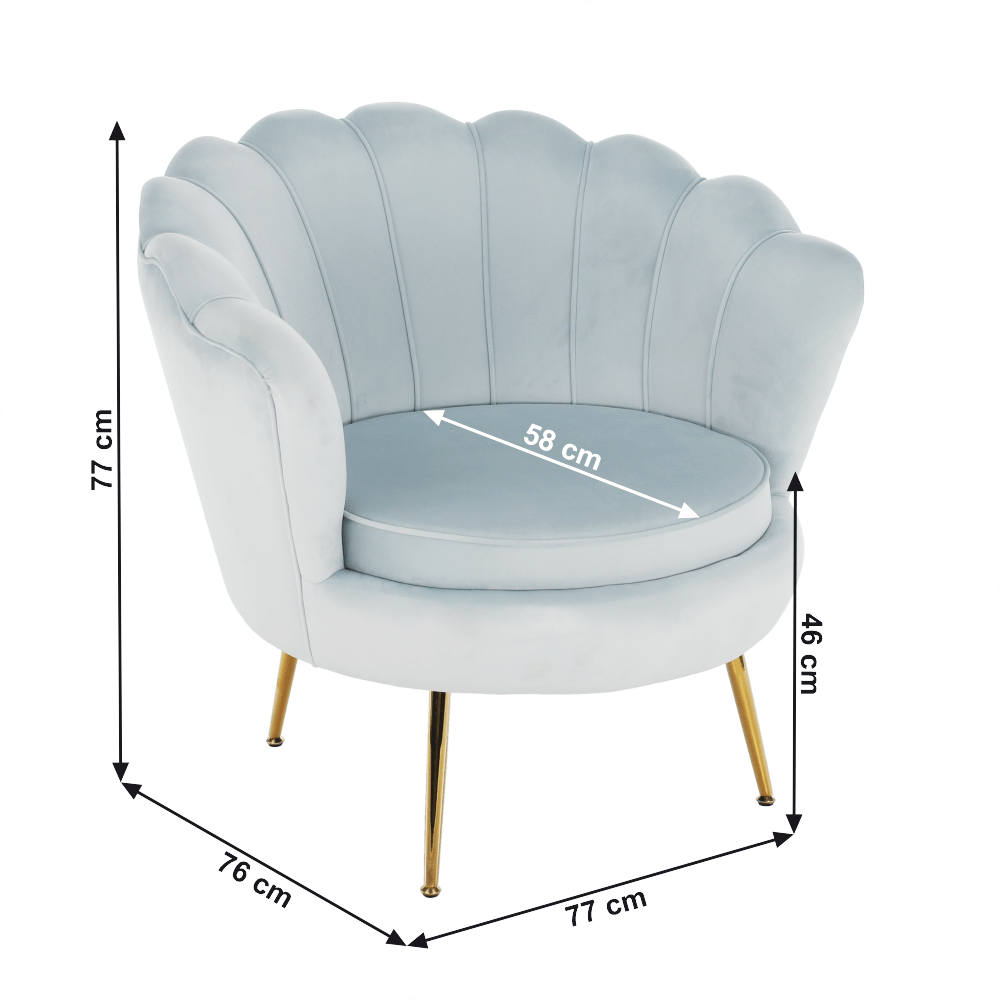 Fotoliu în stil Art-deco, catifea Velvet gri-albastru/crom auriu, NOBLIN
