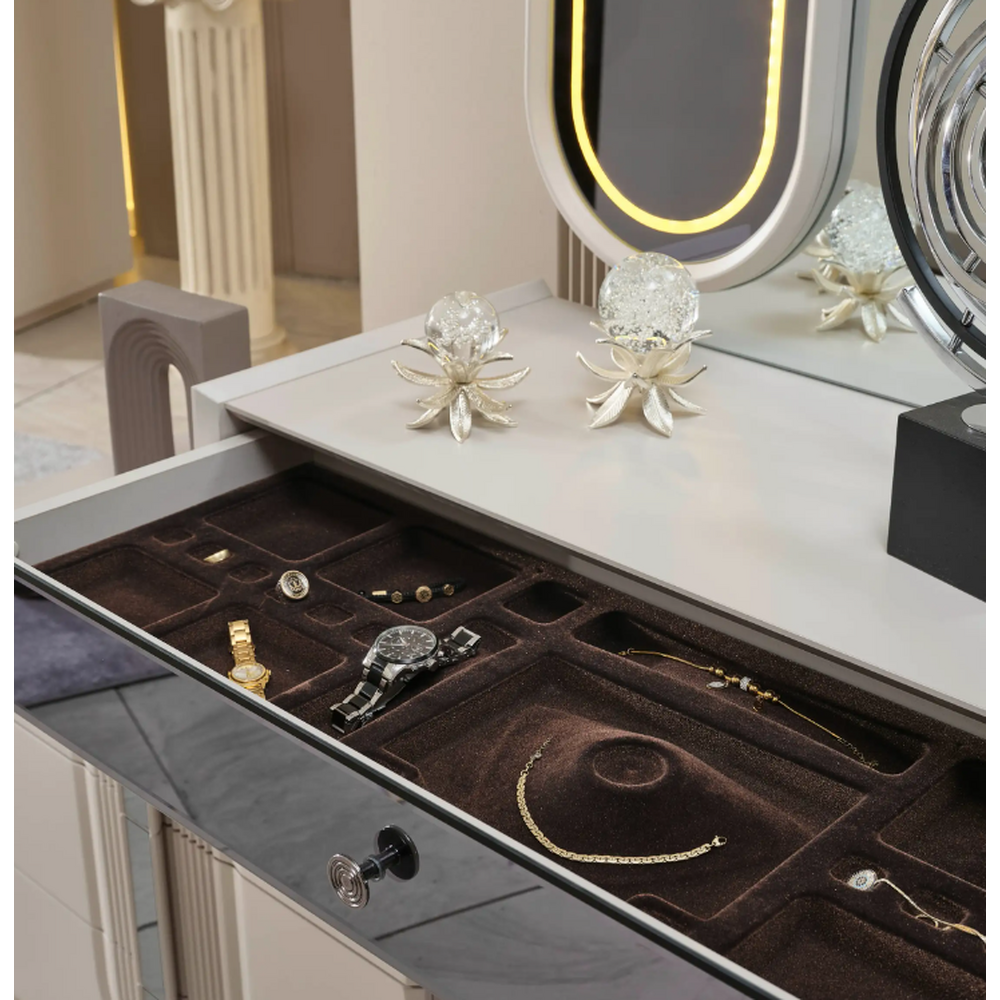 dormitorul cu o piesa de rezistenta, destinata in principal femeilor:o masa de toaleta cu