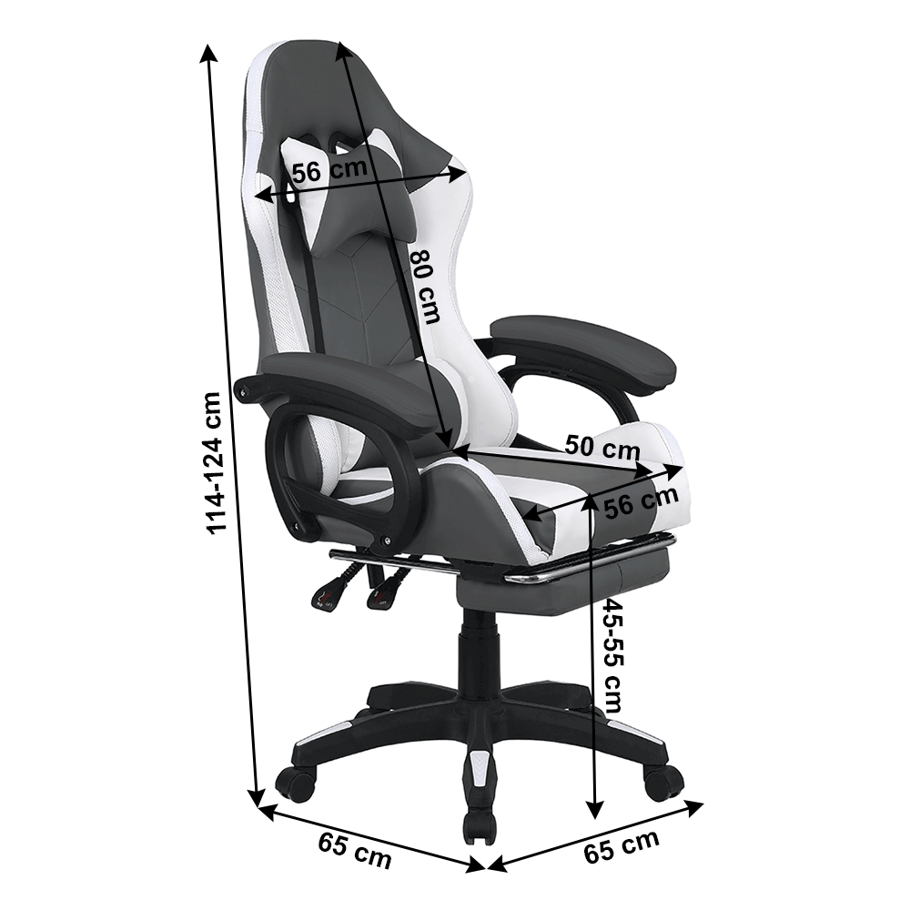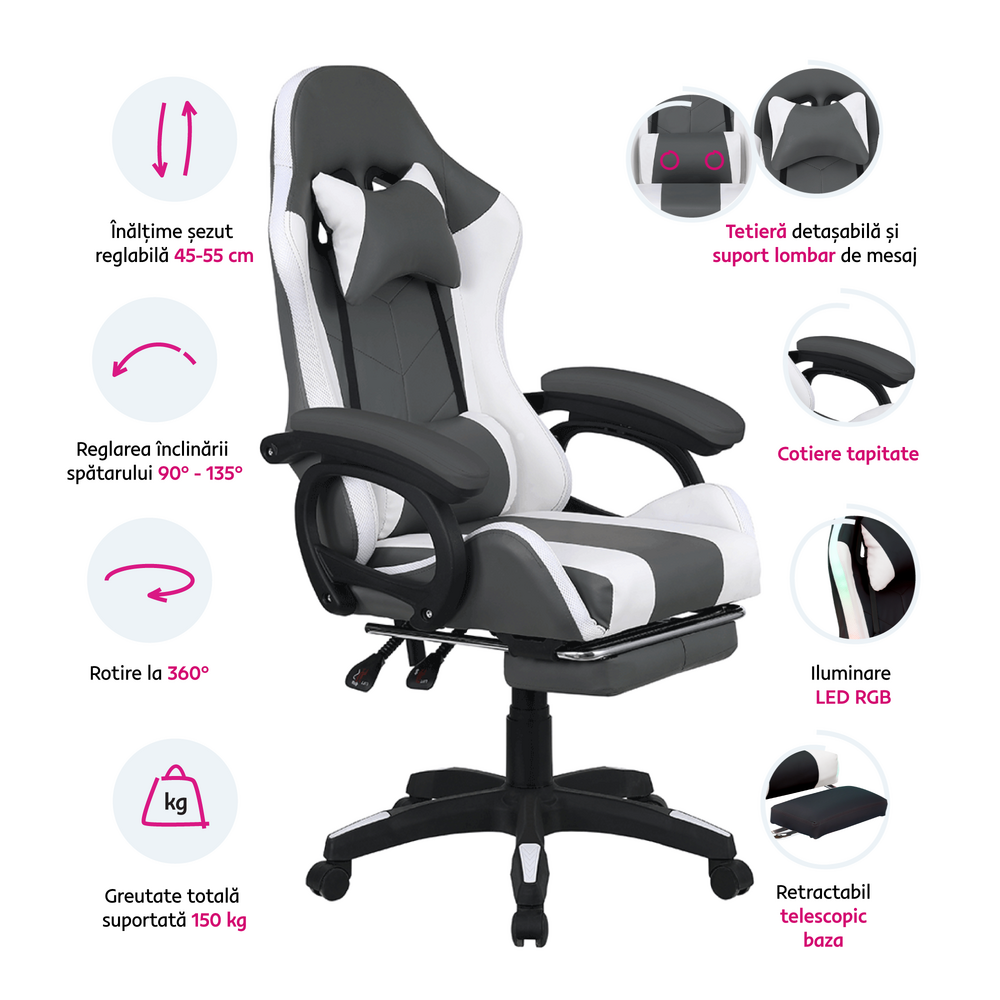Scaun de birou / joc cu iluminare LED RGB, negru / alb, JOVELA