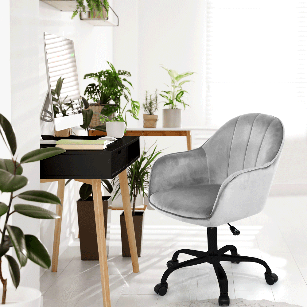 Scaun de birou, material textil din catifea gri deschis / negru, EROL